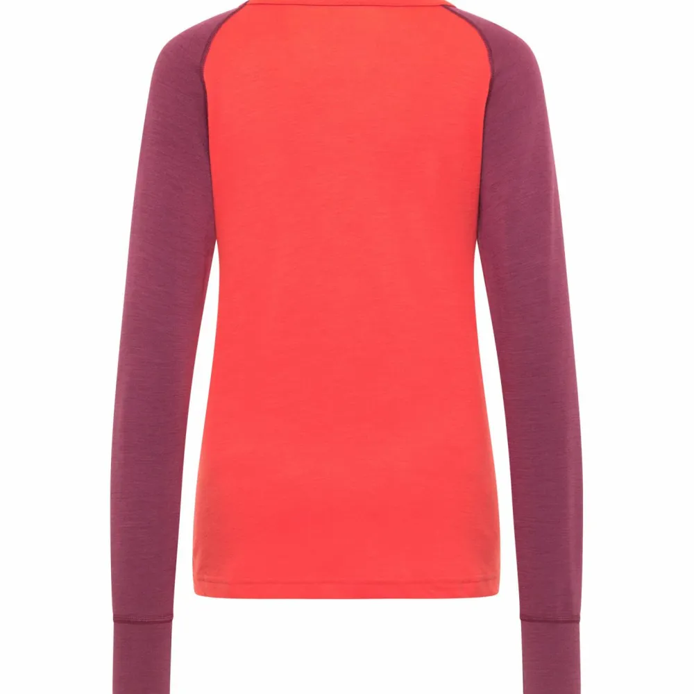 Der bequeme Rundhalsausschnitt und die breiten Ärmelbündchen sorgen stets für einen angenehmen Sitz, ohne zu stören. Dank der Flachnähte und der Raglanärmel bietet das Damenoberteil zudem viel Bewegungsfreiheit. Das ist besonders von Vorteil, wenn man draußen sportlich und aktiv unterwegs ist.