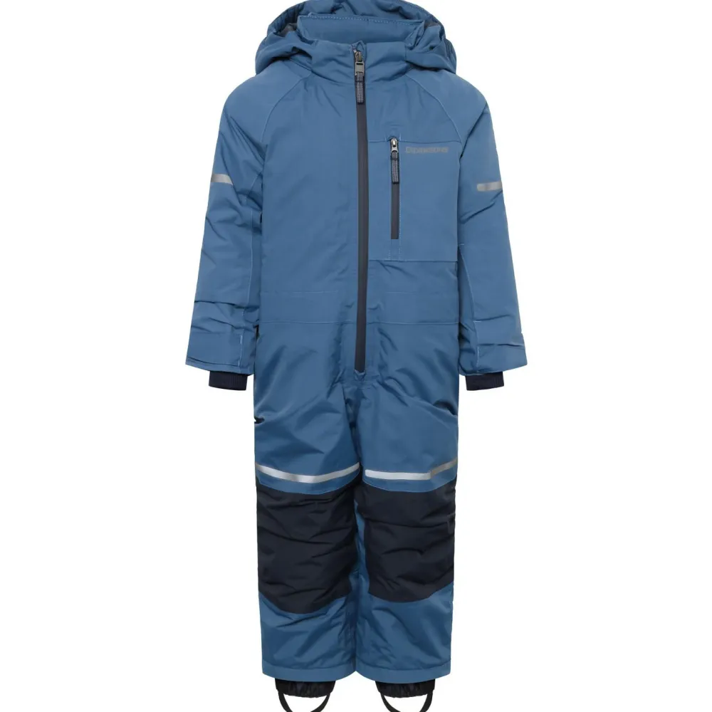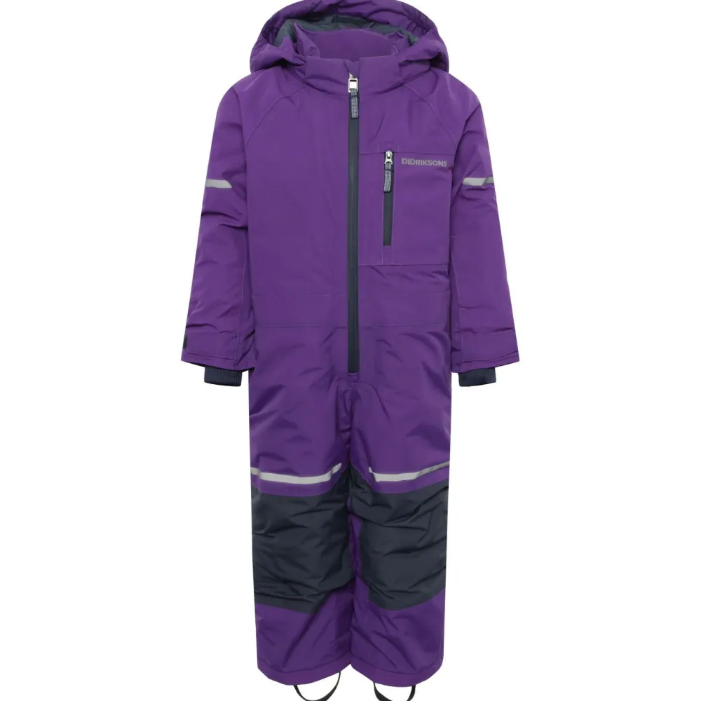 Mit einem überwiegen einfarbigen Design und einem guten Schutz vor Kälte und Niederschlag kann der Kid’s Falken Coverall von Didriksons punkten. Dieser Overall für Kinder überzeugt darüber hinaus durch praktische Features und ist für zahlreiche Outdooraktivitäten bestens geeignet. Das Außenmaterial ist dabei wetterfest und atmungsaktiv zugleich. Hierdurch kann kein Regen oder Schnee von außen in den Overall eindringen, im Inneren entstehende Feuchtigkeit wird aber schnell an die Umgebungsluft abgeleitet. Zusätzlich sorgt die Kunstfaserwattierung für einen optimierten Wärmerückhalt.