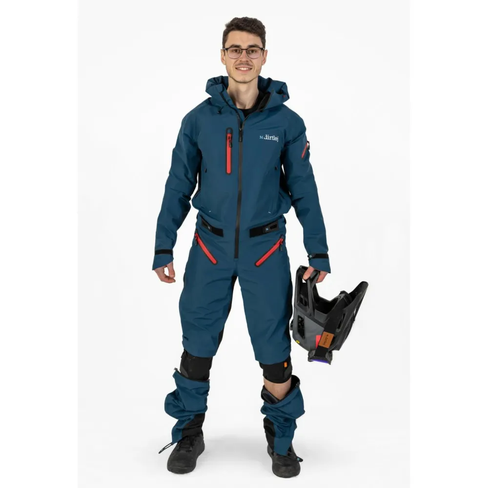 Keine Warteschlange am Lift, allein im Bikepark, nur das Wetter macht nicht mit? Kein Problem, mit dem Dirtsuit SFD Edition von dirtlej hast du auch bei absolutem Schmuddelwetter einen perfekten Tag im Bikepark und kannst dich mit Schlamm, Wasser und richtig ruppigen Passagen anlegen. Die wasser- und winddichten Materialien lassen den Störenfrieden keine Chance sich einen Weg ins Innere des Einteilers zu bahnen. Hier bleibt es gemütlich und trocken, komme was wolle. Auch schweißtreibende Bedingungen machen hier keinen Unterschied. Gleich doppelt ist der Einteiler auch auf diesen Fall vorbereitet. Die atmungsaktive Membran ermöglicht einen schnellen Feuchtigkeits-Transport an die Oberfläche. Hier kann feuchte Luft schnell verdunsten. Auch manuell kann mit den Belüftungs-Reißverschlüssen für direkte Luftzufuhr gesorgt werden.