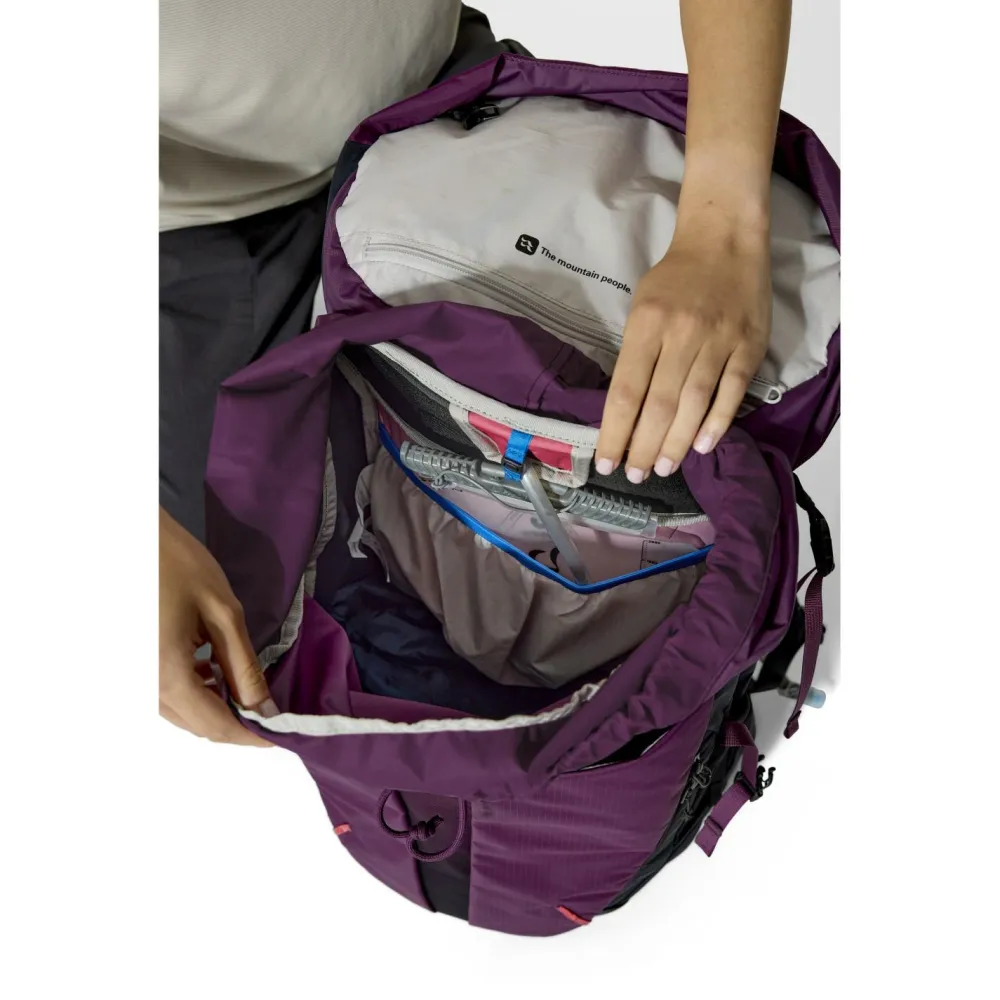 Damit Du unterwegs ohne anzuhalten Flüssigkeit aufnehmen kannst, ist der Rucksack mit einer Trinkblase kompatibel. Die Hüftgurte können einfach und schnell individuell angepasst werden und verfügen zudem über zwei Taschen. Am Rückenbereich ist der Rucksack zusätzlich belüftet, wodurch unangenehm feuchte Bedingungen verhindert werden können. Perfekt für anstrengende Tage in den Bergen.