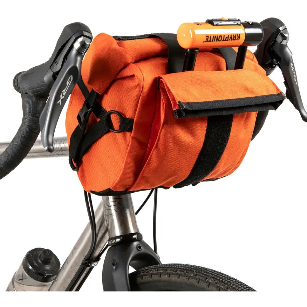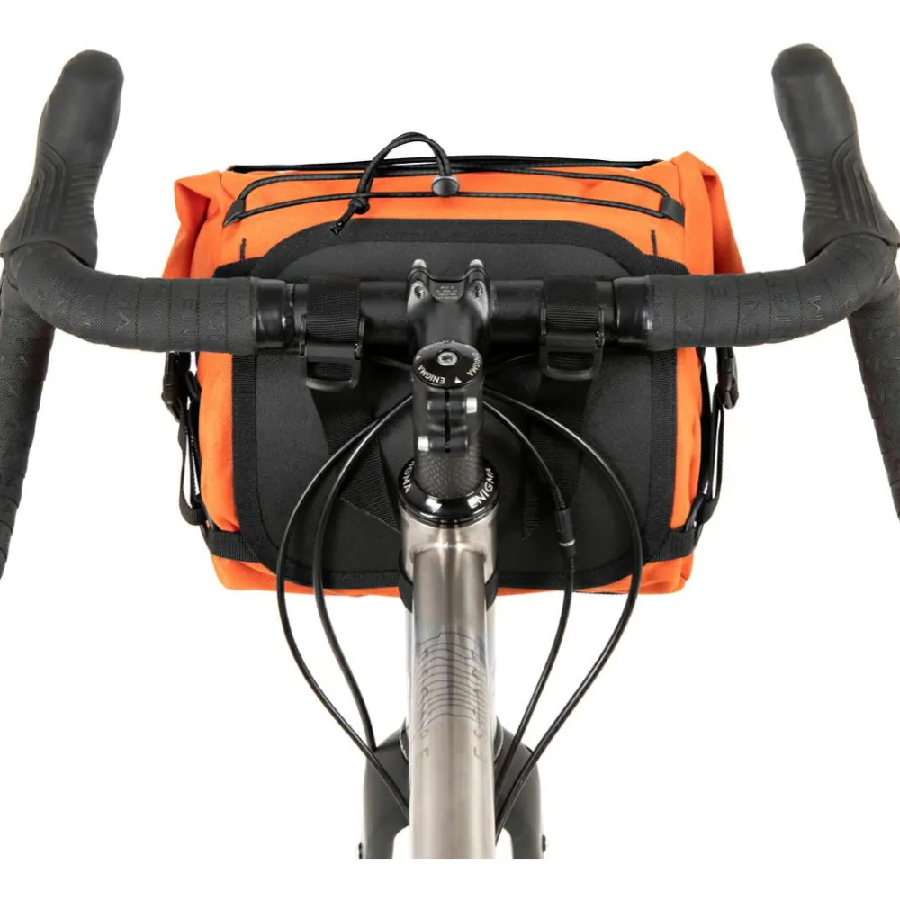 Die Bar Pack Lenkertasche von Restrap fasst 10 Liter und ist ganz easy ohne Werkzeug am fast jedem Lenkrad zu befestigen. In einem Hauptfach und einem zusätzlichen Frontfach kannst Du einiges verstauen. Die Tasche hat die Maße 29 x 23 x 16 cm (B x L x T). Dank des wasserdichten 1000D Polyamid-Materials bleiben Deine Sachen darin auch trocken. Beide Fächer sind mit einem Rolltop-Verschluss zu verschließen, sodass auch von oben kein Wasser in das Tascheninnere hineindringt.