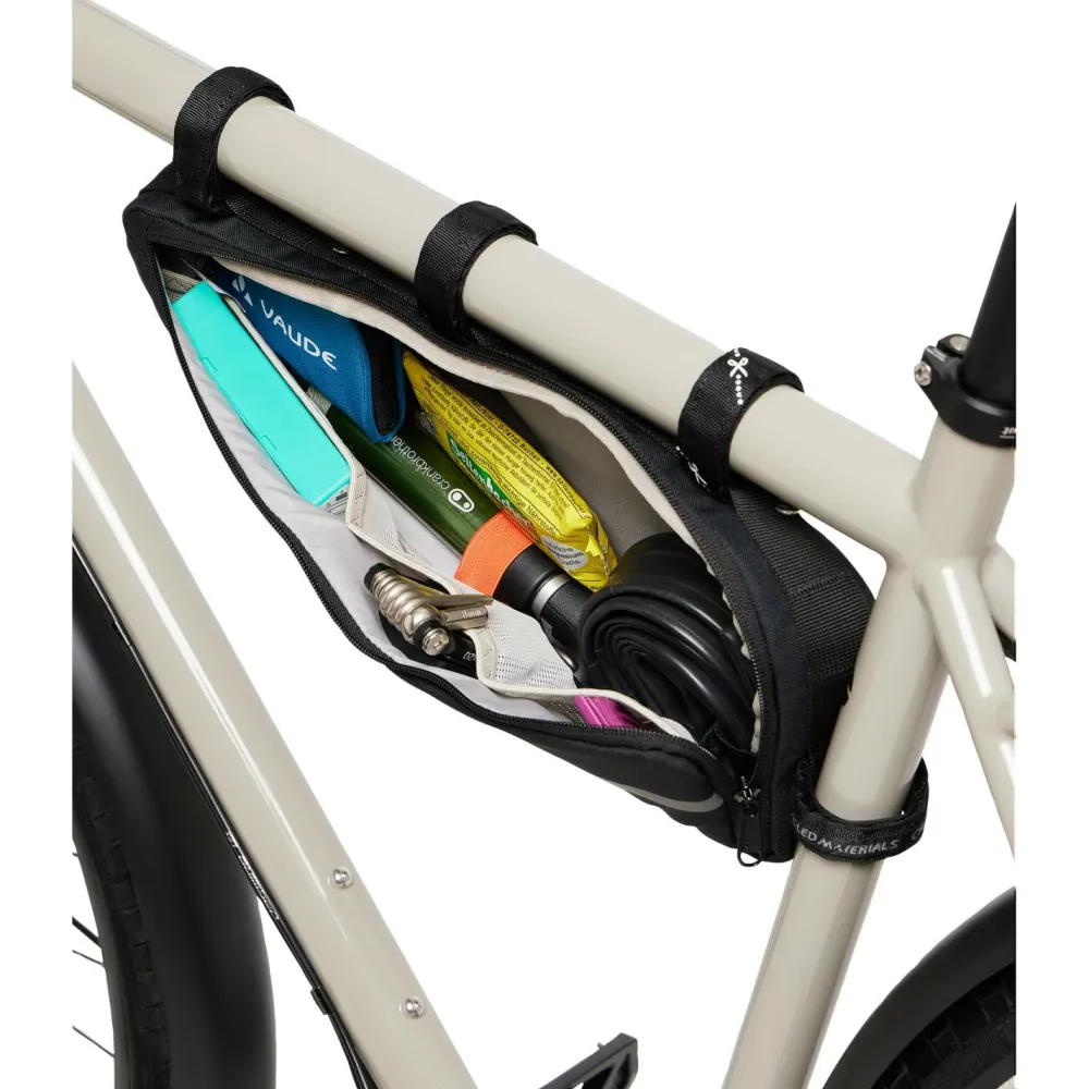 Einfach mit Klettverschluss lässt sich die Fahrradtasche Frame Bag XL von Vaude am Rad befestigen!