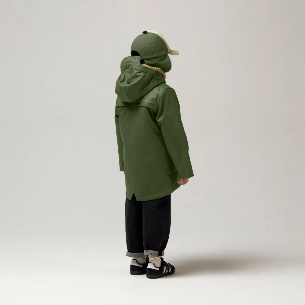 Die Außenjacke ist mit einer Kapuze samt kleinem Schirm ausgestattet, der das Gesicht bei Regen zusätzlich schützt. Verstellbare Ärmelbündchen sorgen dafür, dass kein Wind eindringt und die Jacke mitwächst. Die Innenjacke punktet mit elastischen Bündchen und einem weichen Fleece-Material, das zuverlässig wärmt. Beide Jacken lassen sich dank durchgehendem Reißverschluss einfach an- und ausziehen – ideal für Kinder, die viel draußen unterwegs sind.