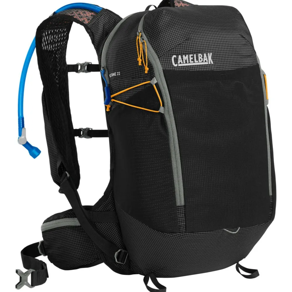Der Octane 22 von Camelbak ist ein Tagestourenrucksack mit einer 2-Liter-Trinkblase und Trinkschlauch. Er eignet sich ideal für sommerliche Tagestouren, auf denen Du viel trinken musst. Mit einem Volumen von 22 Litern bietet der Rucksack genug Stauraum für Proviant und zusätzliche Kleidung. Zudem ist er dank ultraleichter Polyamid- und Polyester-Materialien sehr leicht und kompakt. Das Air Mesh in den Schulterträgern sorgt für eine gute Belüftung und reduziert unangenehme Schweißstellen an den Schultern. Die Polster im Hüftgurt erhöhen den Tragekomfort zusätzlich. Seitliche Taschen und zwei Stockhalterungen bieten außerdem eine komfortable Möglichkeiten, Ausrüstungsgegenstände an den Außenseiten zu transportieren.