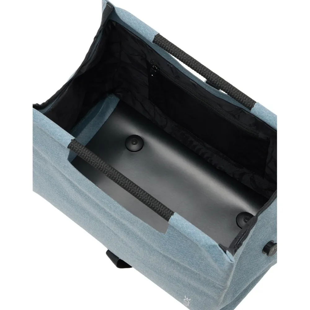 Die ReCycle Shopper (Uniklip) Gepäckträgertasche von Vaude ist eine wasserdicht verschweißte und erweiterbare Einkaufstasche fürs Fahrrad. Sie verfügt über einen abnehmbaren Schultergurt und einen komfortablen Tragegriff. Mithilfe eines Adapters lässt sich die ReCycle Shopper schnell und einfach Befestigen und Abnehmen. Mit ihrem UniKlip Befestigungssystem ist sie vielseitig einsetzbar, da sie ohne zusätzliche Adapter auf verschiedenen Gepäckträgern verwendet werden kann. Das System passt sich automatisch an Gepäckträger mit einem Durchmesser von 10 bis 16 mm an und ist anpassbar für Trägerbreiten von 9 bis 16 cm. Ein integrierter Diebstahlschutz ist vorhanden, die maximale Belastung beträgt 10 Kilogramm.