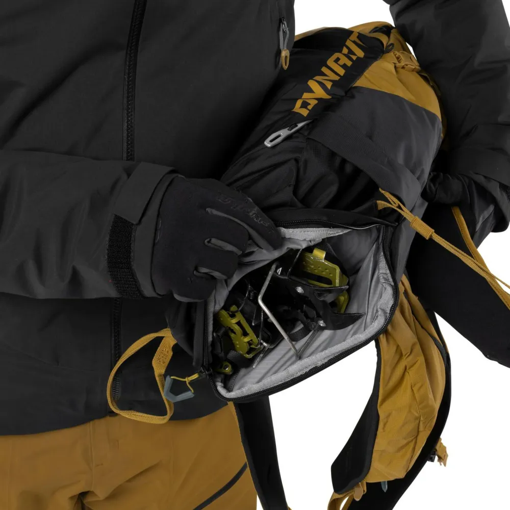 Der Ridge 26 Skitourenrucksack von Dynafit liegt mit seinen ergonomischen und gepolsterten Schulterträgern angenehm auf dem Rücken. Dieser tolle Tragekomfort bleibt auch bei langen Touren erhalten und Du kannst Dich voll und ganz auf den Sport konzentrieren. Im Innern bietet der Rucksack eine Menge Taschen und Aufbewahrungsfächer für alle Kleinigkeiten, die auf der Skitour nicht fehlen dürfen. So sind Sicherheits-Equipment und Brille mit eigenen Fächern sicher verstaut. Für Energieriegel, oder das Smartphone sind am Hüftgurt kleine Taschen angebracht, die zusätzlich mit einem Reißverschluss versehen sind.