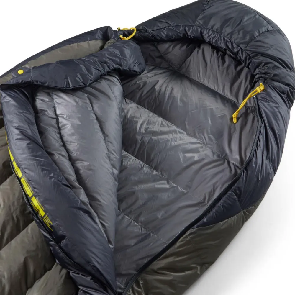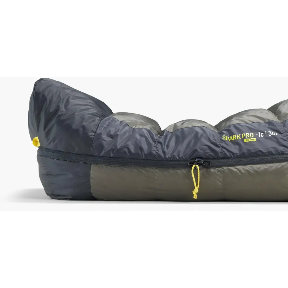 Das Außenmaterial des Spark Pro -1° ist sowohl wasserdicht als auch atmungsaktiv, sodass der Schlafsack im Zelt wie auch im Freien für Komfort sorgt. Die Füllung aus RDS-zertifizierter Gänsedaune kommt mit einer gewaltigen Bauschkraft von 950+ cuin, die für eine Wärmeleistung der Spitzenklasse sorgt. Die Daunen sind mit der Ultra Dry Down-Technologie behandelt, sodass sie eine stark verbesserte Wasserbeständigkeit aufweisen, und auch bei feuchten Bedingungen weiter wärmen und ihren Bausch nicht so schnell verlieren. Konstruiert ist der Schlafsack in einem intelligenten Kammersystem, das an die einzelnen Teile der menschlichen Anatomie angepasst wurde, was für eine optimale Wärmeverteilung sorgt.