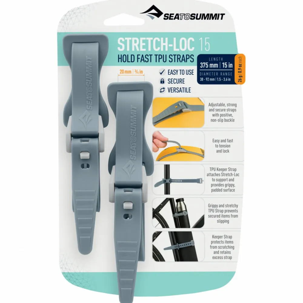 Um Ausrüstungsgegenstände sicher zu befestigen, hat der Reisende und der Trekker die Gurte Stretch-Loc 15 2-Pack von Sea to Summit dabei. Sie bestehen aus griffigem, dehnbaren Material. Schnell und einfach lassen sie sich spannen. Verbindet man mehrere Gurte, erhält man mehr Länge. Einfach vielseitig!