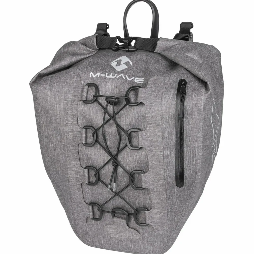 Die Suburban Carry Gepäckträgertasche von M-Wave bietet die Möglichkeit Ausrüstung und verschiedene Gegenstände sicher mit dem Fahrrad von A nach B zu transportieren. Die wasserdichten Eigenschaften sorgen dafür, dass das Transportgut trocken bleibt. Eine herausnehmbare Innentasche bietet eine nützliche Option, wenn es zum Einkaufen geht. An der Außenseite der Tasche lassen sich Kleinigkeiten verstauen, indem sie an der elastischen Halterung, oder in der kleinen Reißverschlusstasche verstaut werden.