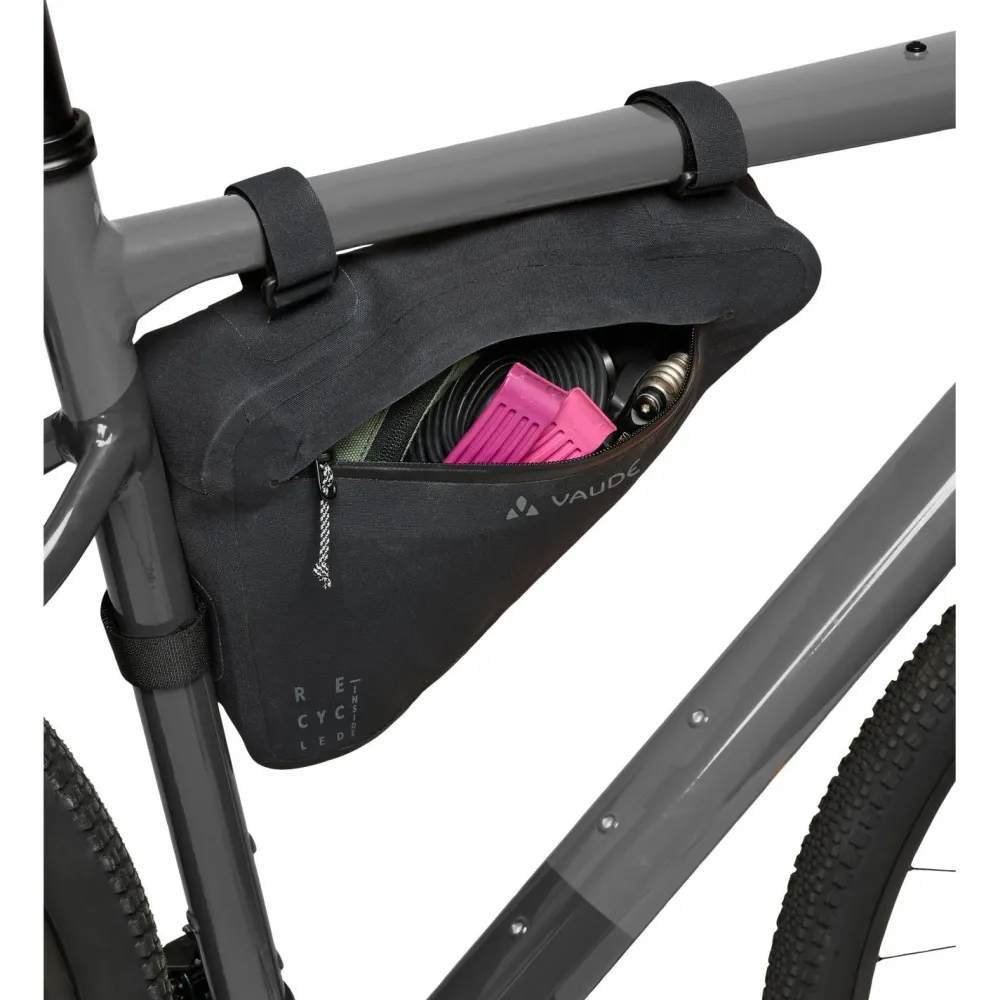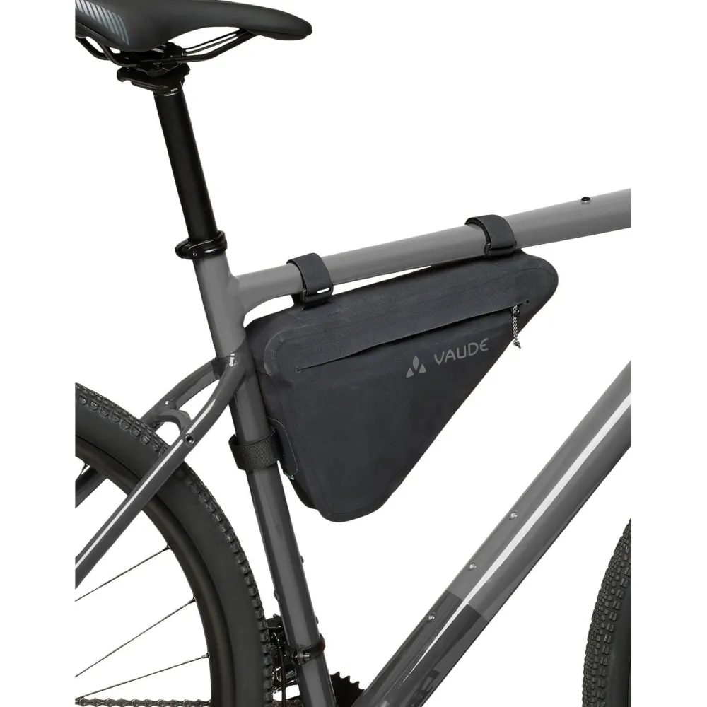 Die Trailframe M Fahrradtasche von Vaude lässt sich schnell und unkompliziert per Klettverschluss am Fahrradrahmen befestigen – passend für Rahmenumfänge von 9 bis 17 cm. Ihr wasserdichtes Material und die wasserdichten Reißverschlüsse sorgen dafür, dass Deine Ausrüstung selbst bei starkem Regen trocken bleibt.