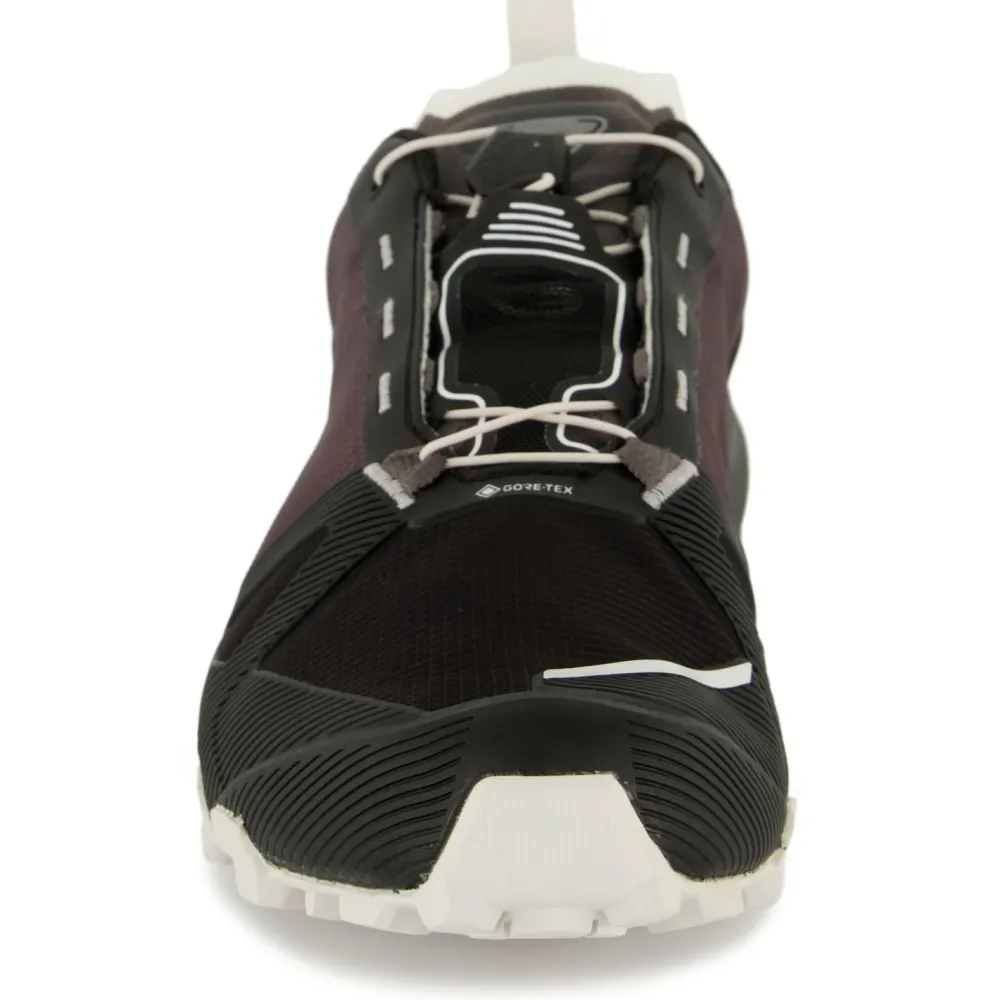 Zudem ist das Obermaterial besonders robust, abriebfest und gleichzeitig atmungsaktiv. Und die integrierte GORE-TEX Membran sorgt dafür, dass bei Regen und Nässe die Füße besser geschützt sind. Hier werden die Vorteile eines leichten Trailrunningschuhs mit der Strapazierfähigkeit eines Mountaineering-Schuhs perfekt kombiniert. Leichtigkeit, Vielseitigkeit treffen auf Schutz, Halt und Grip!