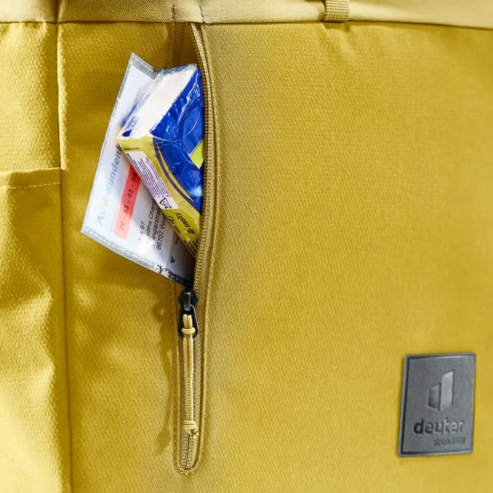 Der UP Seoul 16+10 von deuter ist ideal für Sportler mit urbanem Lifestyle, die sich einen nachhaltig produzierten Rucksack mit einer guten Übersicht für ihre Sachen wünschen. Der sportive Daypack ist komplett aus recycelten PET-Flaschen nach bluesign-Standard hergestellt.Dank seines bewährten deuter Aircontact-Rückensystems ist der Rucksack top belüftet. Gepolsterte, ergonomische Schultergräger, ein abnehmbarer Brust- und Bauchgurt ermöglichen individuelle Tragemöglichkeiten. Elektronische Gadgets wie Smartphone, Notebook und Laptop finden in drei unterschiedlich großen, eigens dafür konzipierten Innentaschen einen sicheren Platz. Ein großes Reißverschluss-Frontfach, zwei Seitentaschen mit und ohne Reißverschluss sowie ein Wertsachenfach innen bieten ausreichend Möglichkeiten, den Inhalt gut organisiert zu verstauen. Ein gepolsterter, stabiler Boden macht den UP Seoul 16+10 von deuter standfest. Komfortables Packen ermöglichen der umlaufende Zwei-Wege-Reißverschluss und ein zusätzlicher Frontgriff.