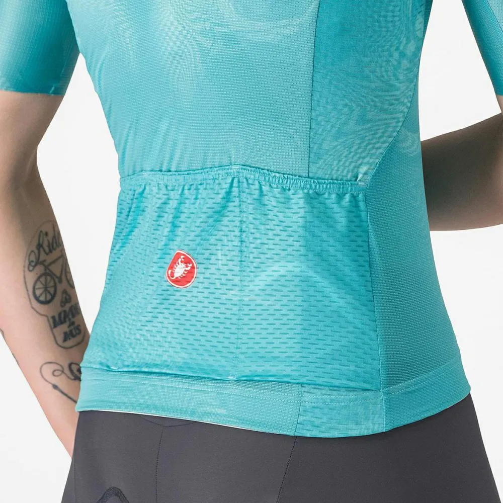 Praktisch und funktional – das Castelli Women’s Fantasia Jersey ist mit drei Rückentaschen ausgestattet, die Dir ausreichend Stauraum für alles bieten, was Du unterwegs benötigst. Egal ob Energieriegel, Handy oder Werkzeug – alles findet seinen Platz und ist schnell griffbereit. Die strategische Anordnung der Taschen sorgt dafür, dass nichts stört oder verloren geht, selbst wenn Du über holprige Wege fährst.