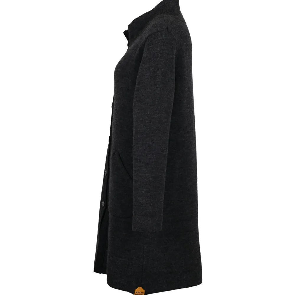 Mit der durchgehenden Knopfleiste kann der Stehkragen hoch geschlossen werden, sodass Dein Hals vor kaltem Wind geschützt ist. Dank der Wolle ist der Mantel atmungsaktiv, wärmeisolierend und temperaturregulierend, und darüber hinaus hemmt dieses tolle Naturmaterial die Entstehung unangenehmer Gerüche. Zwei Einschubtaschen wärmen Deine Hände oder bieten Platz für Kleinigkeiten.