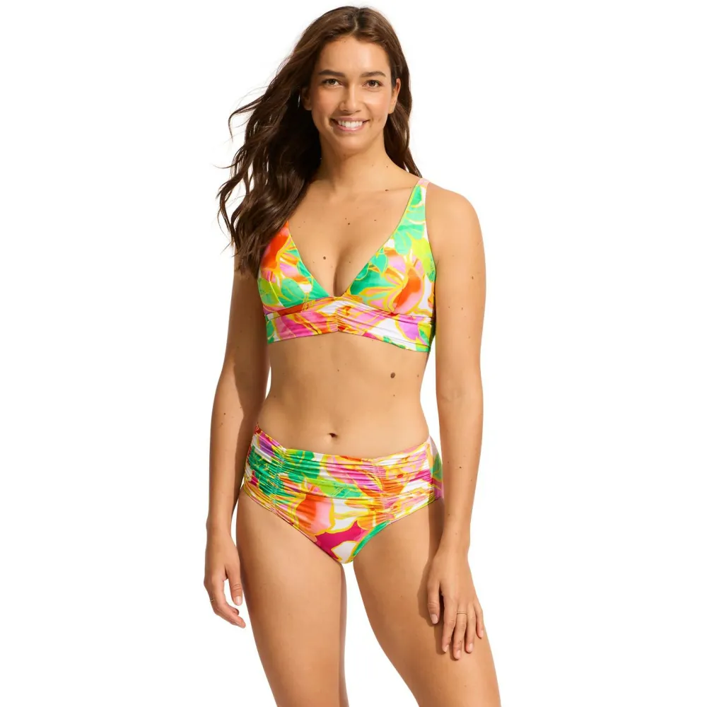 Tauche mit dem Women’s Wonderland Longline Tri von Seafolly in ein tropisches Paradis ein. Dieses stylishe Oberteil kombiniert exotisches Design mit höchstem Tragekomfort für ultimativen Strandgenuss. Das Bikinioberteil präsentiert ein aufregendes tropisches Muster, das an Palmen, Blüten und Sonnenuntergänge erinnert. Ein Hauch von Exotik, der Deine Strandgarderobe zum Strahlen bringt.
