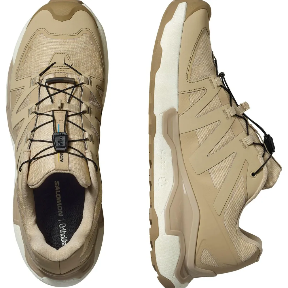 Mit dem Salomon XC Roam Gore‑Tex bist Du für feuchtes Wetter bestens gerüstet. Das strapazierfähige Obermaterial aus Synthetik und Textil wird durch eine GORE‑TEX-Membran ergänzt, die Dich zuverlässig vor Regen schützt und dabei angenehm atmungsaktiv bleibt. Die verstärkte Fußspitze und Ferse geben Dir zusätzliche Stabilität, während das Ortholite Fußbett für dauerhaften Komfort sorgt. Ob Stadtwege oder spontane Abstecher ins Grüne – Du bleibst rundum gut geschützt.
