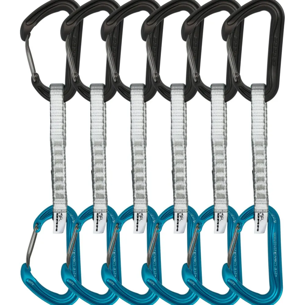 Die Aether Quickdraw von DMM ist Dein perfekter Begleiter für Mehrseillängen mit langem Zustieg oder Hochtouren, bei denen es auf das Gewicht ankommt.Das schmale Dyneema-Band und die leichte Konstruktion der Schnappkarabiner sorgen für minimales Gewicht. Du bemerkst sie also kaum an Deinem Gurt.Die Nase an den Schnappkarabinern verhindert, dass das Seil eingeklemmt wird und die Form der Schnappkarabiner wurde so konzipiert, dass möglichst wenig Reibung auf das Seil kommt. Die Aether Quickdraw ist also perfekt, wenn Dir die Langlebigkeit Deines Seils und wenig Seilreibung am Fels wichtig sind.Also schnapp Dir das Aether Quickdraw Set und nichts wie raus zum nächsten Alpin-Abenteuer!