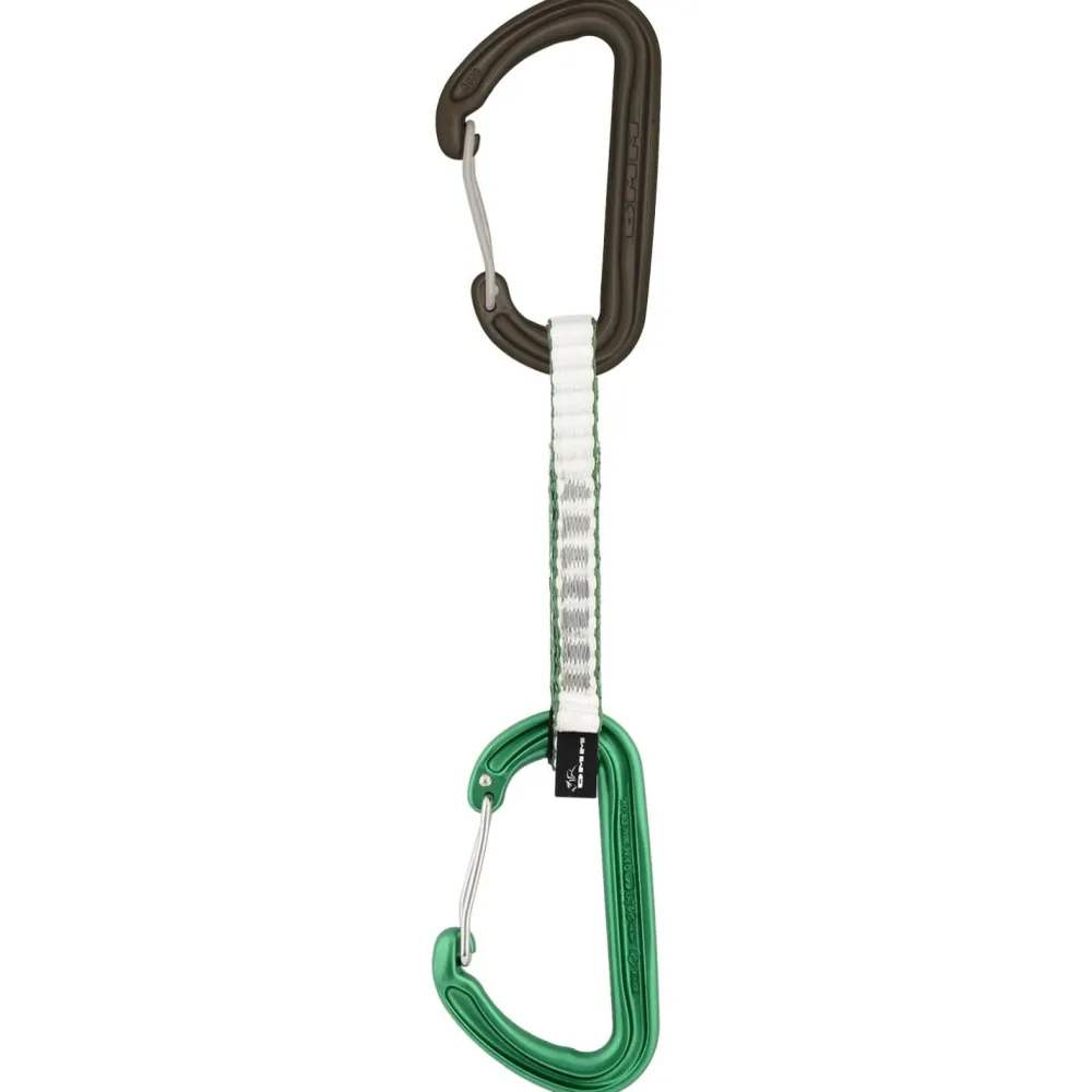 Mit einem besonders breiten Einsatzgebiet kommt die Spectre 2 Quickdraw von DMM zu uns. Dieses Express-Set kann dabei sowohl beim Fels, als auch beim Eisklettern punkten und überzeugt durch ihr geringes Gewicht. Der Grund hierfür liegt in den beiden Karabinern. Diese kommen mit einem Drahtschnapper, was nicht nur gewicht spart, sondern auch für ein Plus an Sicherheit sorgt. Durch die farbliche Kennzeichnung der beiden Karabiner ist es leicht ersichtlich, welcher in den Haken und welcher ins Seil eingehängt werden muss. Dies spart gerade in schwierigen Routen Zeit und Nerven. Der untere Karabiner wurde außerdem eng in die Schlinge eingenäht. Hierdurch ist er immer optimal vor dem Verdrehen gesichert, was wiederum für ein Plus an Sicherheit sorgt und das Handling erleichtert.