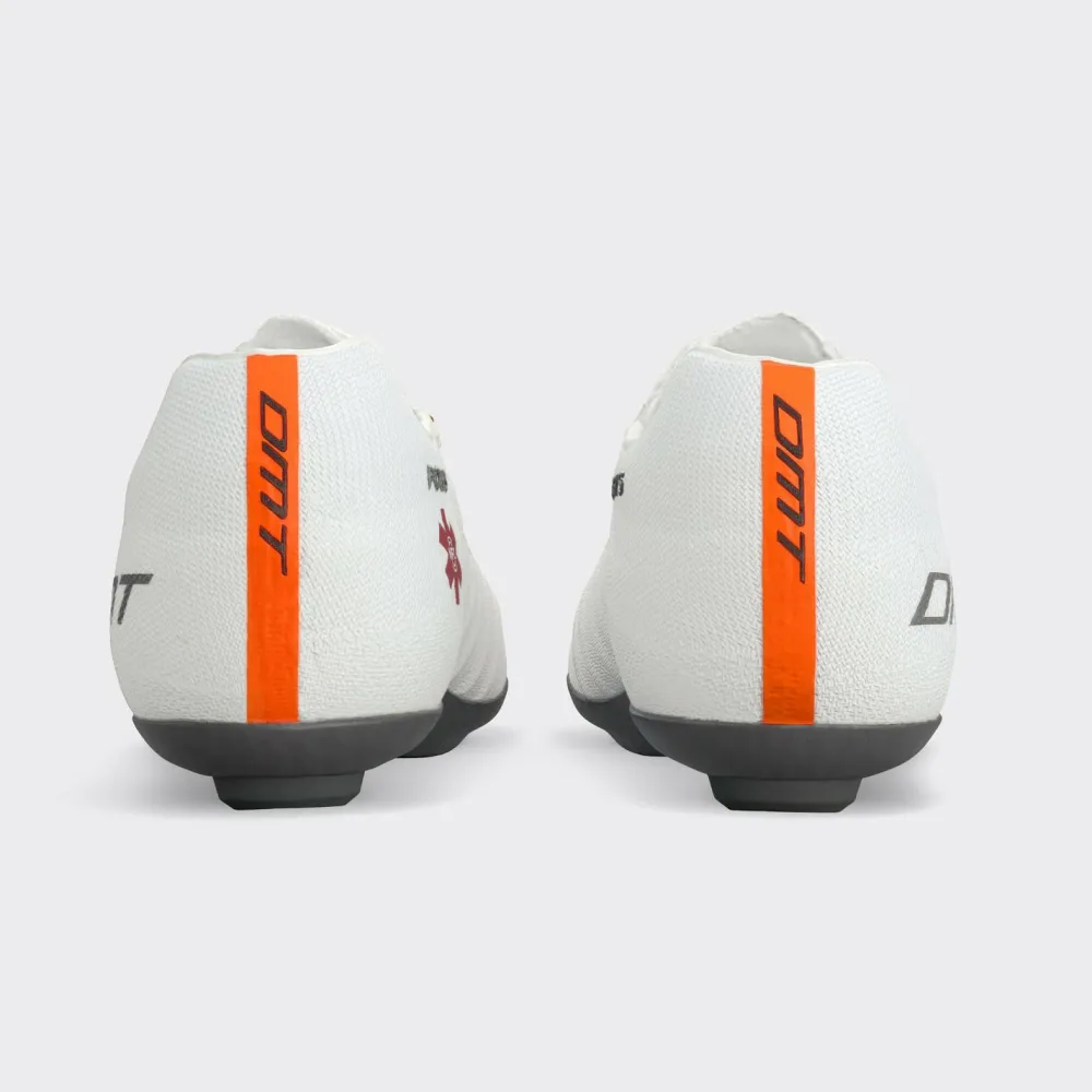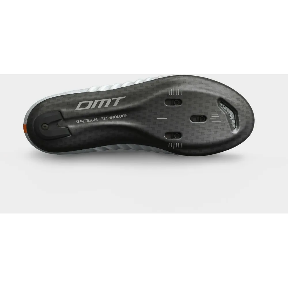 Unter dem Fuß arbeitet die exklusive DMT Superlight Carbonsohle, die innerhalb der DMT Carbon-Abteilung entwickelt wurde. Die hochsteife Carbon-Monocoque-Konstruktion ermöglicht eine direkte und sehr reaktionsfreudige Kraftübertragung. Ein reduzierter Stack verbessert den Kontakt zwischen Fuß und Pedal und erhöht die Kontrolle bei jedem Tritt. Austauschbare hintere Gummielemente aus Dual-Compound-Material erleichtern das Gehen abseits des Bikes und steigern die Haltbarkeit im Fersenbereich. Das extrem geringe Gewicht rundet den kompromisslosen Performance-Anspruch ab.