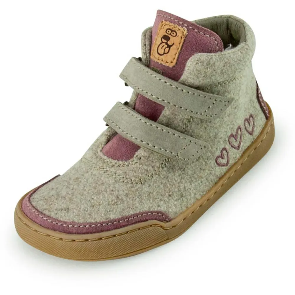 Der Kid’s Terrar Wool High von Doghammer ist ein durchdachter Winter-Barfußschuh für Kinder, die draußen richtig aktiv sind – ob auf dem Spielplatz, im Kindergarten oder beim Spaziergang durch den Herbstwald. Das Obermaterial aus wasser- und schmutzabweisendem Woll-Loden schützt zuverlässig vor Feuchtigkeit und Kälte. Innen sorgt ein atmungsaktives Wollfutter für angenehme Wärme, ohne dass die Füße ins Schwitzen kommen. Die herausnehmbare Kork-Innensohle bietet leichte Dämpfung und isoliert gut gegen Bodenkälte.