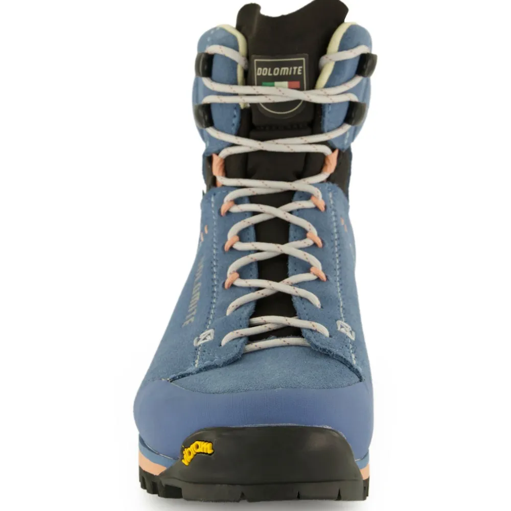 Dolomite setzt bei den Women’s 54 Hike Evo GTX Wanderschuhen auf weiches Wildleder, welches mit einer atmungsaktiven und wasserdichten Membran von GORE-TEX ausgestattet ist. Das robuste Obermaterial hält Wasser gezielt auf Abstand und befördert Feuchtigkeit vom Fuß rasch nach außen hin ab. Durch den verstärkten Fersenbereich und die gummierte Zehenkappe eignen sich die Wanderstiefel ideal für Deine nächste Bergtour in alpinem Gelände.