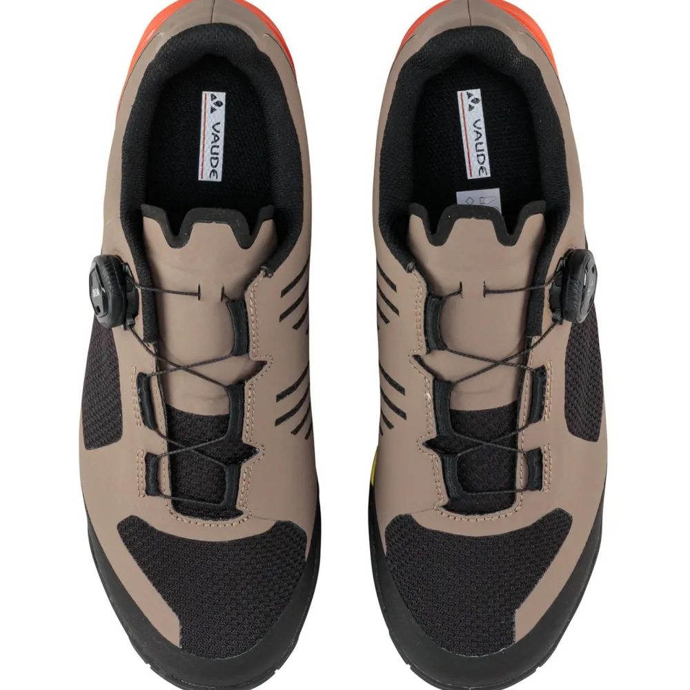Die Downieville Tech II von Vaude sind leichte und atmungsaktive Unisex Mountainbikeschuhe. Sie kombinieren ein hochabriebfestes Hauptmaterial mit einem komfortablen Innenfutter aus vollständig recyceltem Polyester. Ihre VAUDE AM Sohlen sorgen mit durchgängigen Nylonverstärkungen für optimale Kraftübertragung und sind mit ihrem V-Flow Stabilitätsindex von 6 sehr fest.