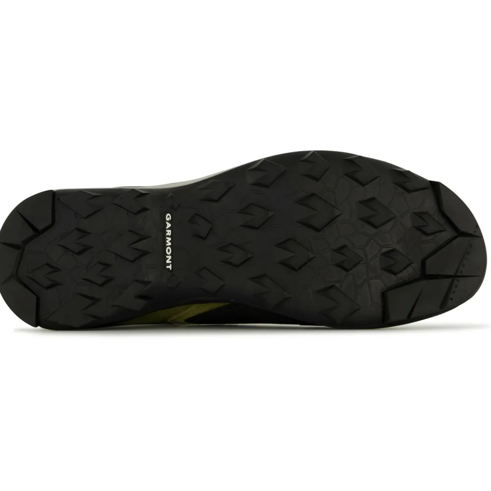 Der feste Schnitt sorgt für einen guten Halt des Schuhs, lässt dem Vorderfuß allerdings angenehm viel Platz. Zum Schutz der Fußgelenke fängt die EVA Mittelsohle mit ihrer dämpfenden Eigenschaft Stöße ab. Die GARMONT Außensohle schenkt mit ihrem griffigen Profil ausreichend Halt im Gelände. Zudem ist sie mit einer Kletterzone an der Fußspitze ausgestattet, so können mit dem Dragontail von Garmont Kletterstellen problemlos gemeistert werden.