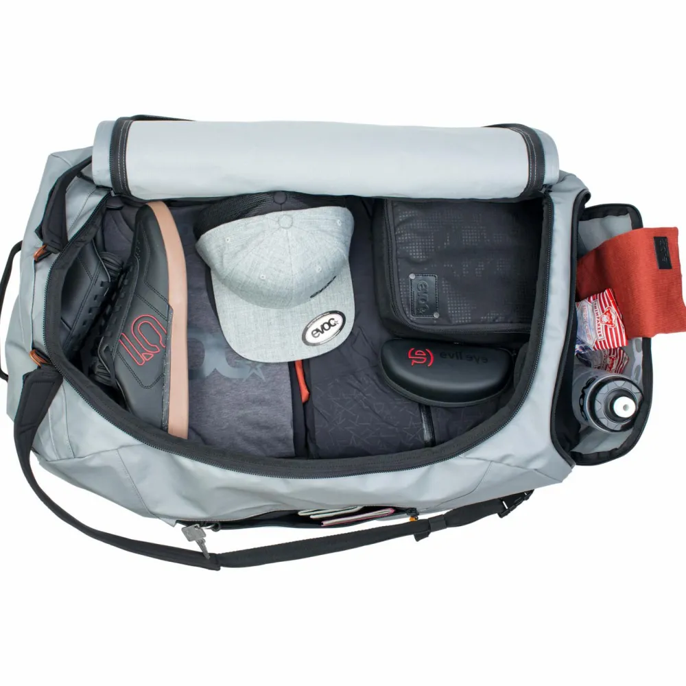 Ein zuverlässiger Allrounder für unterwegs: die Duffle Bag 100 von Evoc. Mit dem geräumigen Dufflebag musst du dir um dein Gepäck keine Sorgen machen, denn das Material ist super strapazierfähig und hält auch widrigen Witterungsbedingungen stand. Für alles was du auf Reisen benötigst, ist im großen Hauptfach ausreichend Platz. Zusätzlich punktet die Tasche mit separaten Nassfächern, die mit wasserabweisenden Reißverschlüssen ausgestattet sind. Für viel Flexibilität und den nötigen Komfort, lässt sich die Tasche über gepolsterte Schultergurte auf dem Rücken tragen. Praktischer Begleiter auf Reisen- Die Duffle Bag 100.