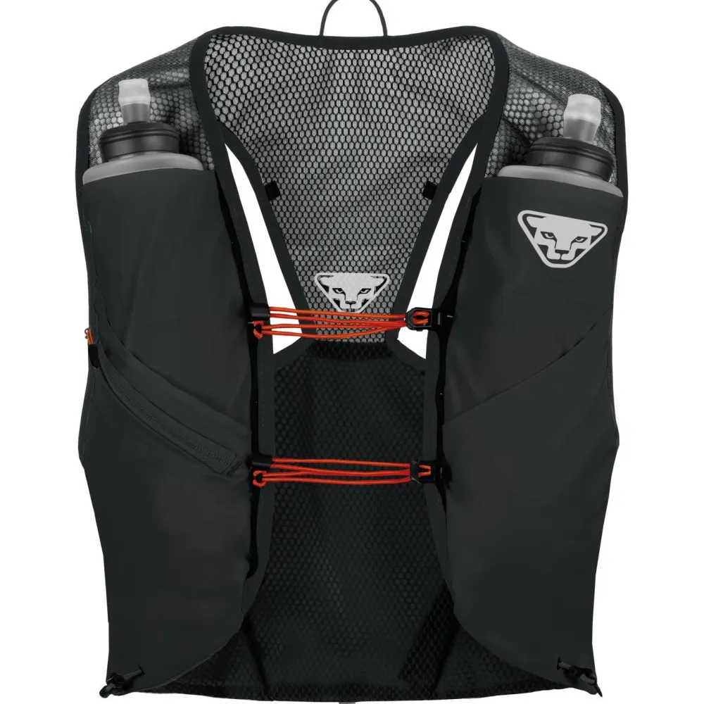 Mit der Sky 4 Vest von Dynafit hat man beim Trailrunning alles Wichtige dabei. Die minimalistische Laufweste bietet höchsten Tragekomfort, geringes Gewicht und durchdachte Halterungen. An den Schulterträgern gibt es zwei Halterungen für Softflaschen. Auch Gels für schnelle Zwischenmahlzeiten können darin verstaut werden.