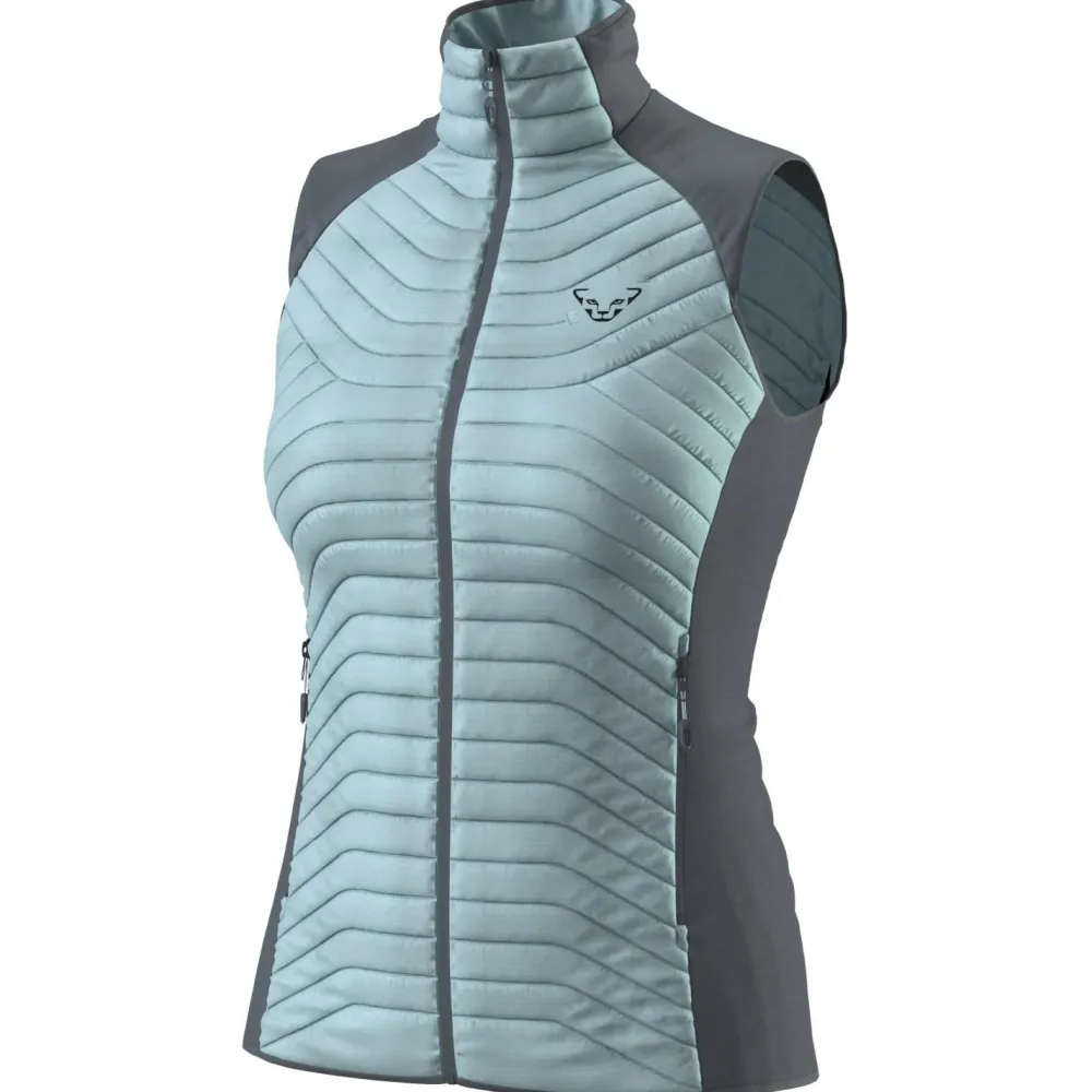 Die Women’s Speed Insulation Vest von Dynafit bietet wohlige Wärme und Komfort bei jeglichen Aktivitäten in der Natur. Sie schafft die Balance zwischen frieren und überhitzen, mit einer Leichtigkeit. Das Material erinnert an Daune, verfügt jedoch auf der Vorder- und Rückseite über eine rein synthetische Füllung aus 100 % recycelten Kunstfasern, die genau dort platziert ist, wo Wärme benötigt wird. Zudem ist sie unempfindlich gegenüber Feuchtigkeit, sehr pflegeleicht und lässt sich klein verpacken.