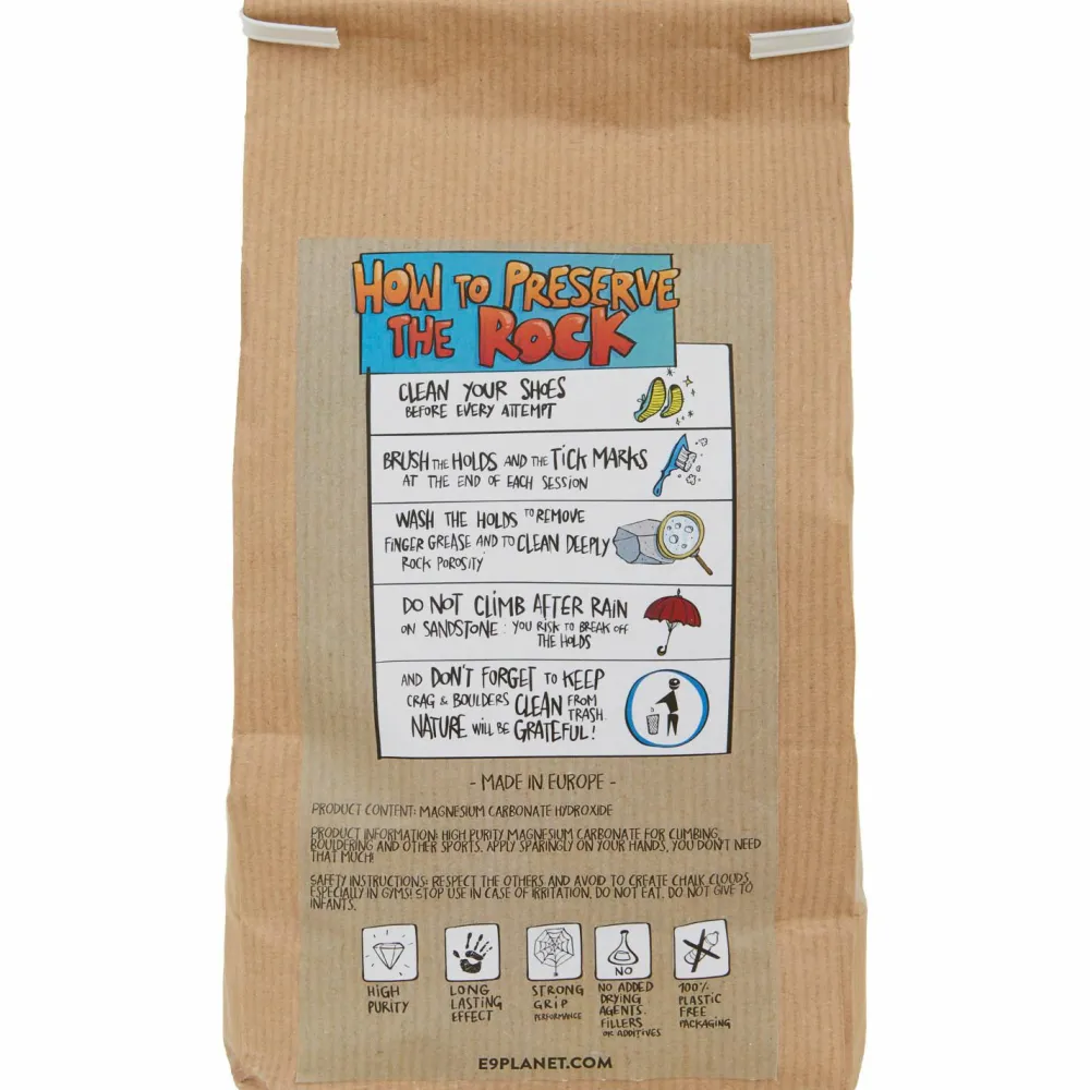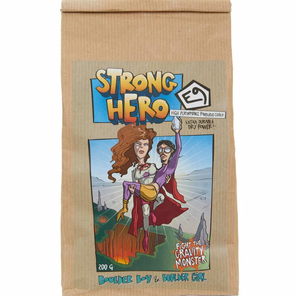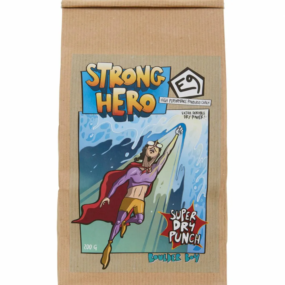 Das Strong Hero 200 Chalk von E9 liefert Grip für die steilsten Kletterrouten! Es sorgt dafür, dass sich kein störender Schweiß oder rutschige Feuchtigkeit an den Fingern bildet. Damit hat man den optimalen Halt an Klettergriffen in der Halle und am Felsen. Cool ist auch die bedruckte Tüte des Strong Hero 200!