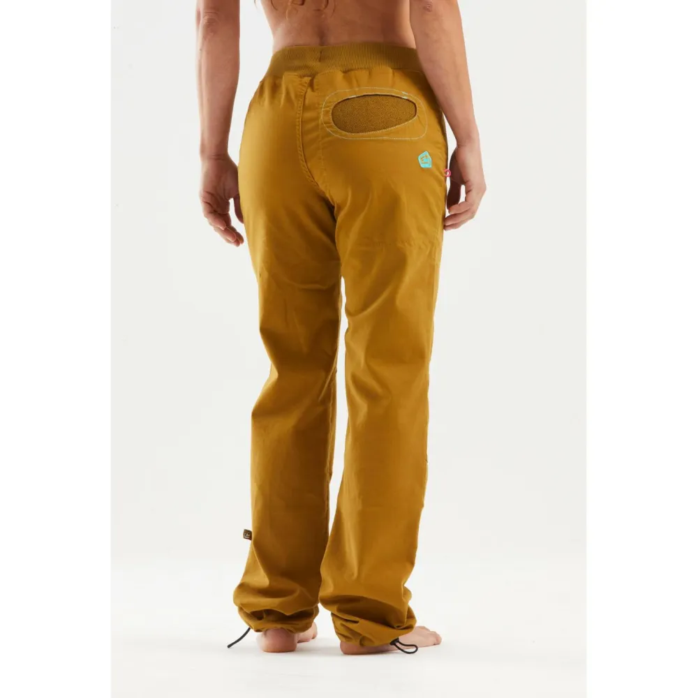 Die Women’s Onda Slim 2 von E9 ist die perfekte Hose zum Klettern oder Bouldern, ob in der Halle oder draußen in der Natur. Sie besteht aus feinster Bio-Baumwolle mit ein wenig Elasthan, das Material liegt angenehm weich auf der Haut, ist atmungsaktiv und verleiht auch nach anstrengenden Passagen einen tollen Tragekomfort. Durch den Stretch-Anteil ist eine sehr natürliche und uneingeschränkte Bewegungsfreiheit gegeben.