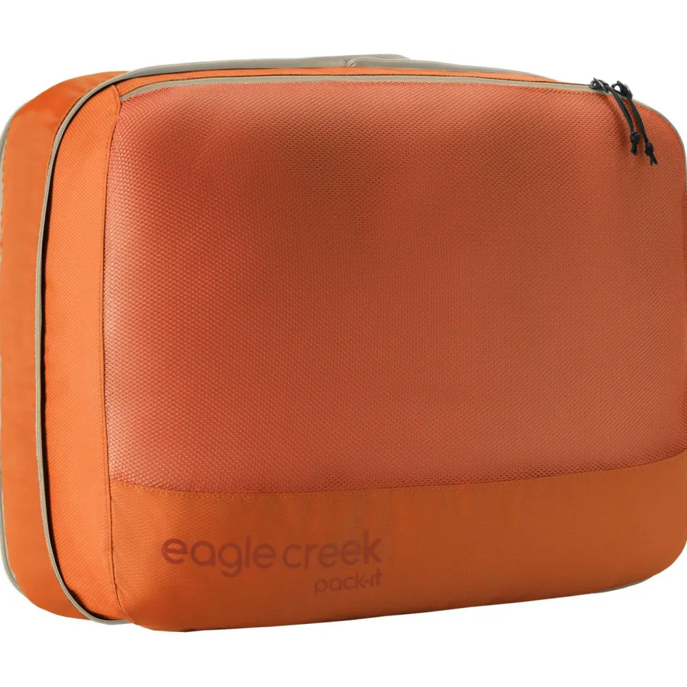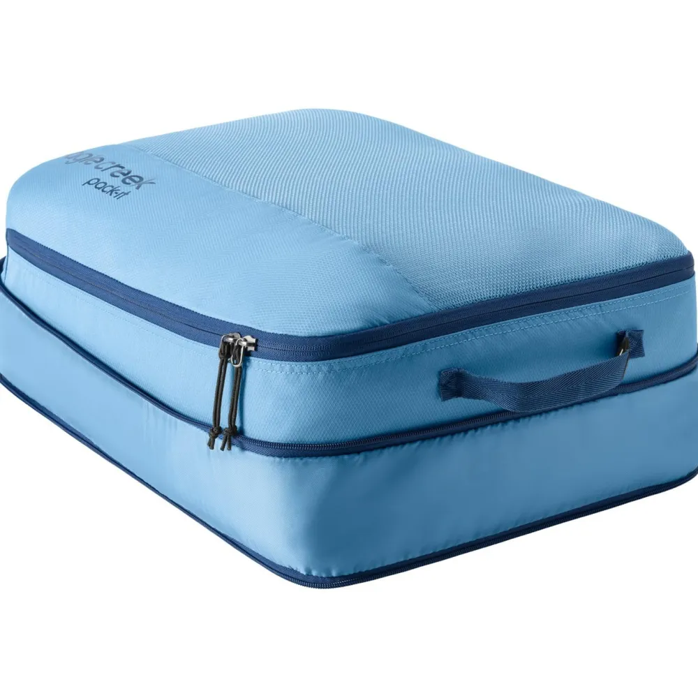 Der Pack-It Reveal Expansion Cube L Packsack von Eagle Creek kommt mit robusten und nachhaltigen Materialien daher. Diese schrecken vor unsanften Berührungen auf Reisen nicht zurück und bestehen aus recycelten Fasern. Für ein einfaches und angenehmes Handling ist der Packsack mit einem Tragegriff ausgestattet. Der Erweiterungs-Reißverschluss bietet die Möglichkeit, das Volumen bei Bedarf zu vergrößern. Pullover, Jacken und andere Gegenstände freuen sich schon auf eine ordentlich sortierte Reise.
