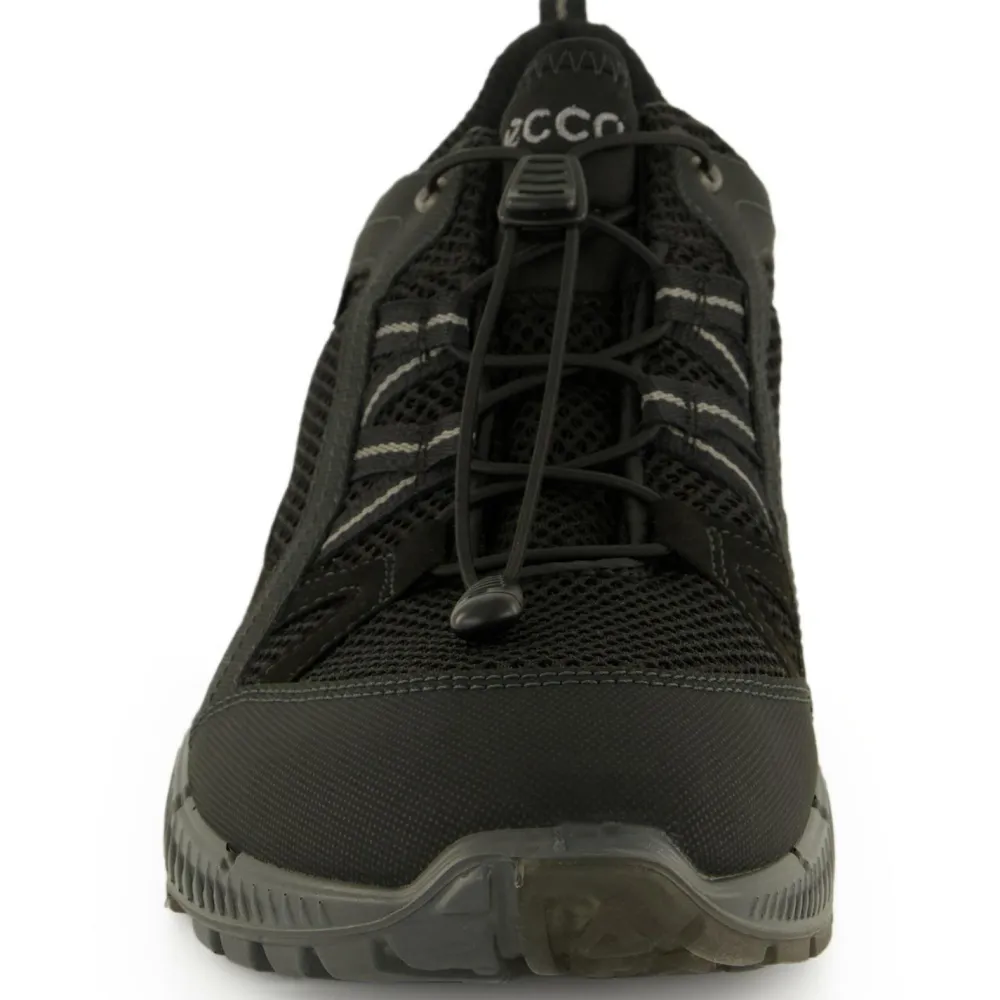 Egal ob beim Trailrunning, Wandern, bei anderen Outdoor-Aktivitäten oder auch einfach so in der Freizeit – die Ecco Terracruise II GTX Multisportschuhe sind bei vielen Unternehmungen tolle Begleiter. Die vielseitigen Schuhe bestechen nicht nur durch ihren stylischen Look, sondern sind auch äußerst funktional. Die GORE-TEX-Membran sorgt dafür, dass die Schuhe wasserdicht, gleichzeitig aber sehr atmungsaktiv sind. Dadurch kann man sowohl bei Regenwetter als auch schweißtreibenden Aktivitäten problemlos mit den Schuhen draußen unterwegs sein. Die aus dem Trailrunning-Bereich übernommene Athleisure Sohle verspricht ein komfortables Laufgefühl sowie einen hervorragenden Grip auf dem Untergrund. Praktisch ist natürlich auch die Schnellschnürung, mit der sich die Schuhe sehr schnell öffnen und schließen lassen. Einfach toll – die Ecco Terracruise II GTX Multisportschuhe.