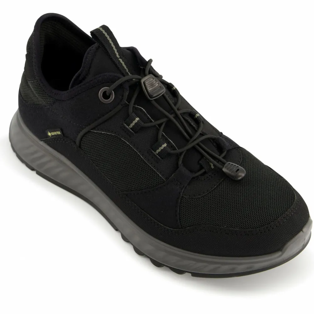 Robuste, komfortable und mit elegantem Design: die Women’s Exostride GTX Sneakers von Ecco! Mit ihrer durch Mikrofasereinsätze ergänzten Schaftkonstruktion sorgen die sportlichen Freizeitschuhe für Komfort und angenehmes Fußklima, dass durch die GORE-TEX Membran um absolute Wetterfestigkeit perfektioniert wird. Hinzu kommt die robuste, griffige und profilierte Außensohle mit ihrer guten Geländegängigkeit. Ergänzend sorgen technische Details wie die gezielt dämpfende SHOCK THRU Konstruktion in der Mittelsohle für mehr läuferische Effizienz und Ausdauer. Dadurch sind die Women’s Exostride GTX Sneakers wirklich vielseitig unterwegs – egal ob in der Stadt, beim Sport oder draußen in der Natur!