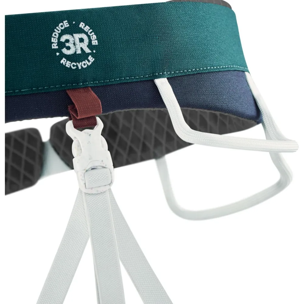 Der Moe 3R ist der erste teilrecycelte Klettergurt von Edelrid.Die bequeme Polsterung als Polyester-Fleece und alle textilen Materialien aus Polyester sind recycelt. Der sicherheitsrelevante Zentralring, der Abriebschutz und die Side-Block-Schnallen zum Verstellen des Gurts sind jedoch nicht recycelt. So hat Edelrid einen guten Weg gefunden, sodass Du Dir mit gutem Gewissen einen neuen Gurt zulegen kannst und Deine Sicherheit dennoch gewährleistet ist.Mit der Butterfly-Shape des Hüftgurts und der Fleece-Polsterung wird die Last optimal verteilt und Du sitzt bequem in Deinem Gurt.Die vier symmetrischen Materialschlaufen und die zwei Befestigungsschlaufen für Eisschrauben machen den Moe 3R zu einem wahren Allrounder für Sportklettern, Mehrseillängen und Eisklettern.