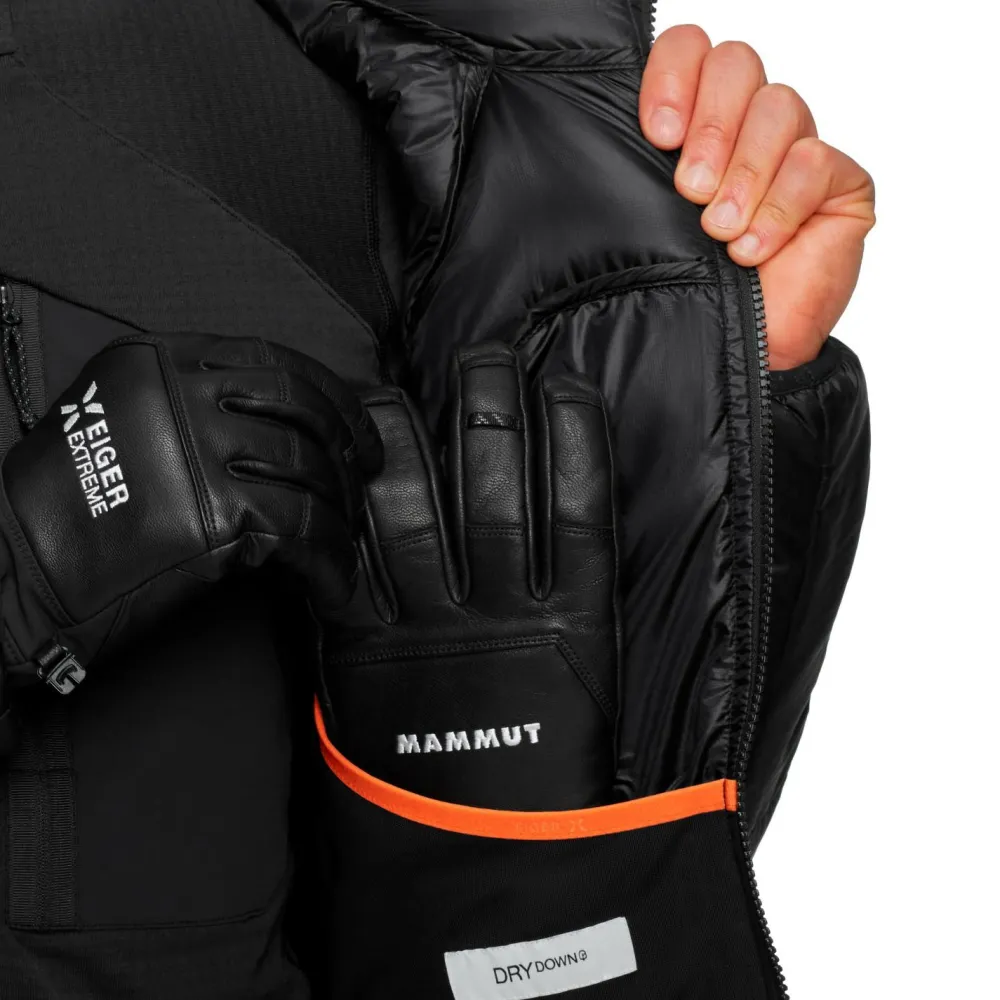 Die geräumigen Taschen der Eiger Nordwand Light Down Insulation Hooded Jacket von Mammut sind mit Reißverschlüssen versehen und zudem so platziert, dass sie auch beim Tragen eines Klettergurts immer zugänglich sind. Recycelte Fasern setzen ein klares Zeichen für mehr Umweltverträglichkeit. Die lässige Optik setzt einen gekonnten Schlusspunkt hinter das gelungene Gesamtkonzept der Jacke.