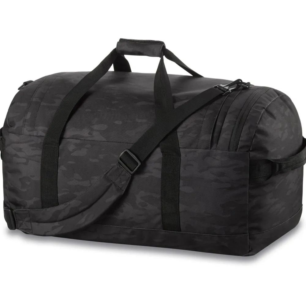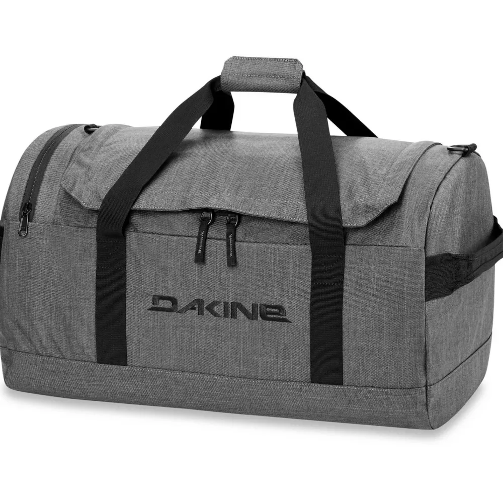 Der EQ Duffle 50L von Dakine ist eine vielseitig verwendbare Trage- und Umhängetasche. Ob auf Wochenendtrips, Kurzreisen oder auf dem Weg zum Sport, mit dieser Tasche kannst Du Deine Sachen bequem und sicher transportieren. Die obere Reißverschlussöffnung ist U-förmig und ermöglicht so einen bequemen Zugriff auf den Inhalt. Ein zusätzliches Außenfach mit Reißverschluss bietet zudem Stauraum für alles, was Du schnell zur Hand haben möchtest. Ein echter Allrounder! Praktisch ist auch, dass Du die Tasche, wenn Du sie zu Hause lagern willst, leicht komprimieren kannst.