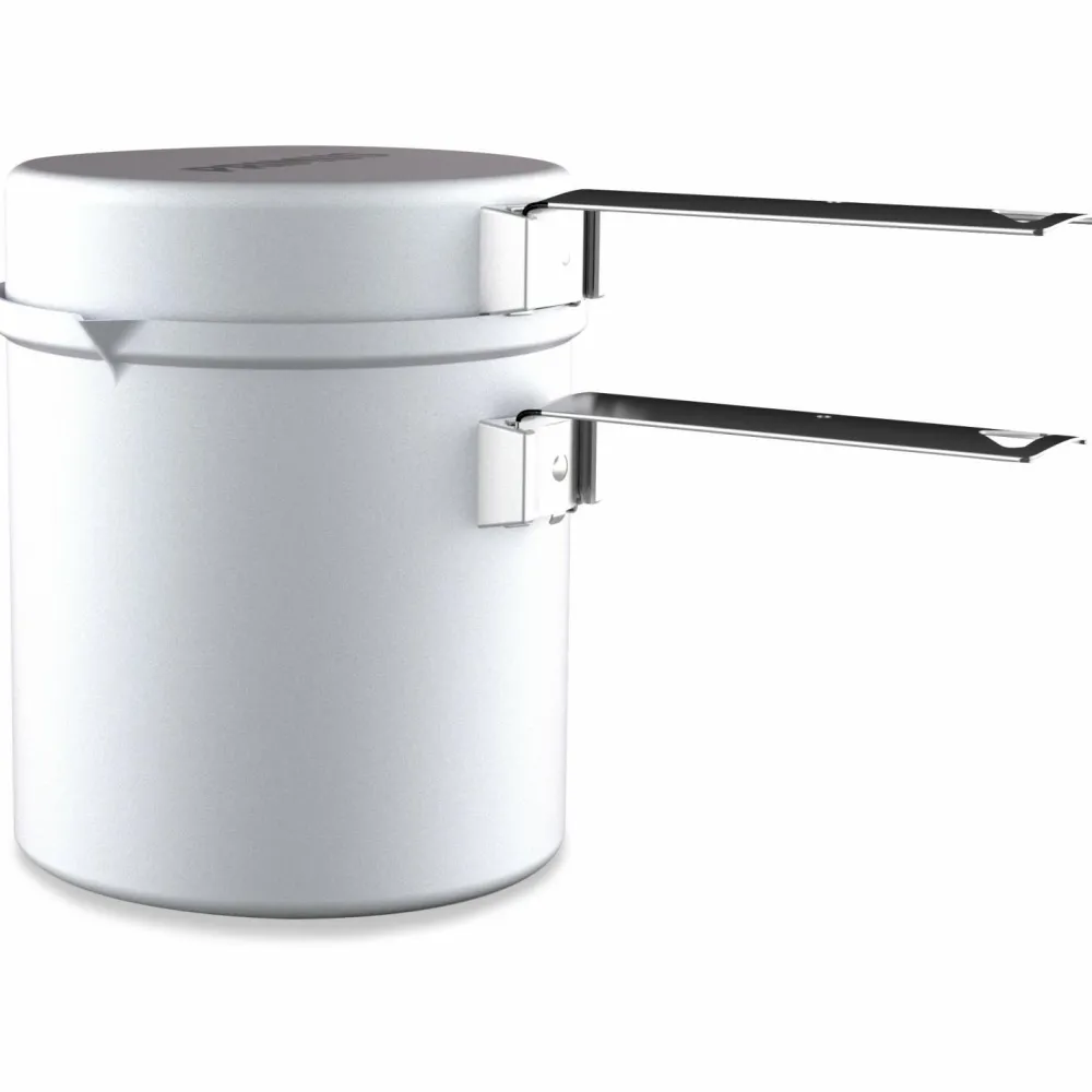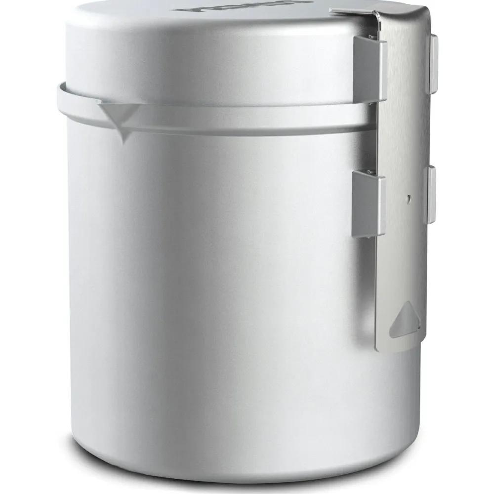 Der Essential Trek Pot 1.0 von Primus besteht aus einer Pfanne, einem Topf mit guter Wärmeverteilung sowie zwei Griffen. So kann selbst auf mehrtägigen Touren gut gekocht werden. Das Aluminium ist robust und leicht. Am Topfboden ist es etwas dicker – so brennt das Essen nicht zu schnell an. Die Pfanne ist mit einer Keramik-Antihaft-Beschichtung versehen und kann auch als Deckel genutzt werden. Beim Transport hält einer der Griffe das komplette Set sicher zusammen.