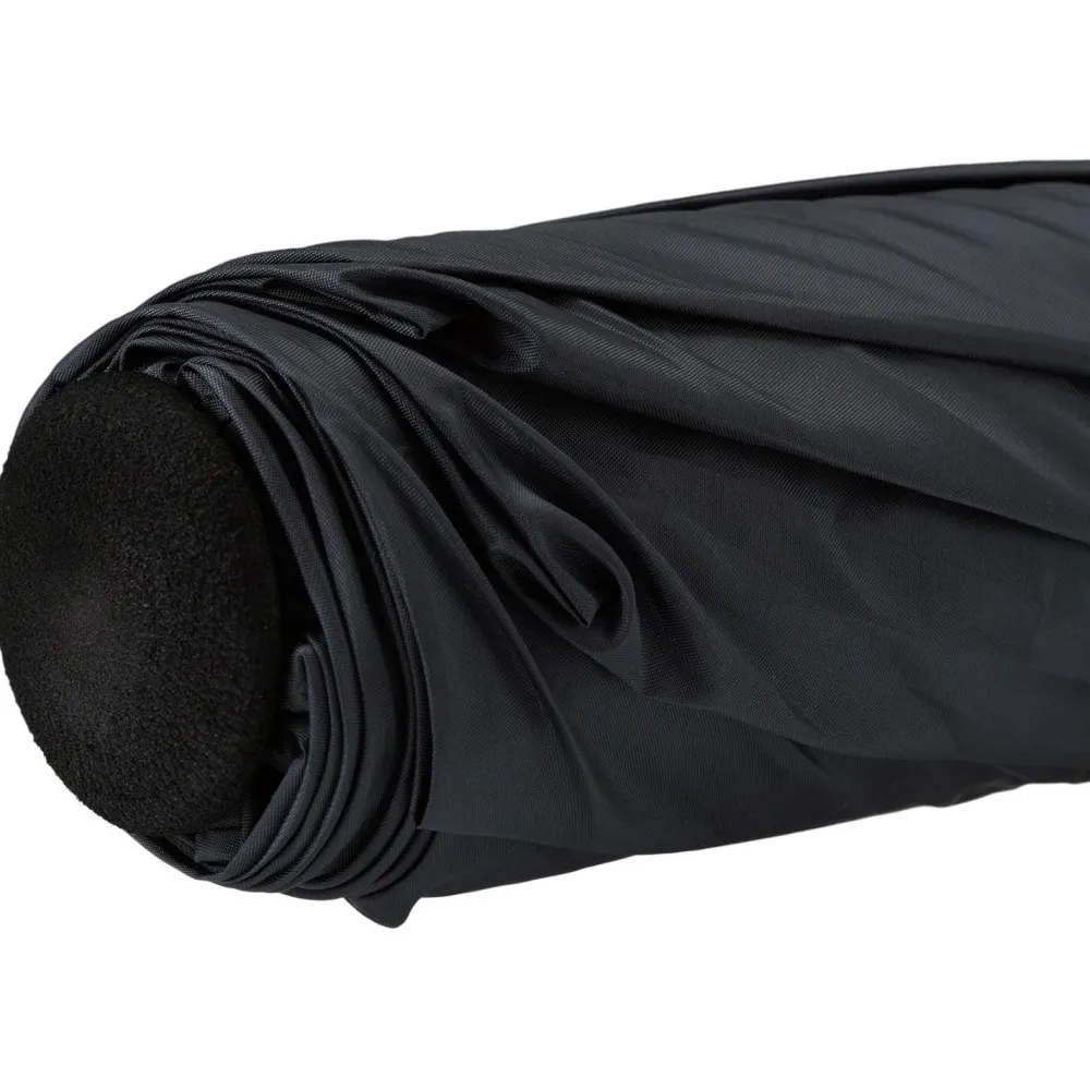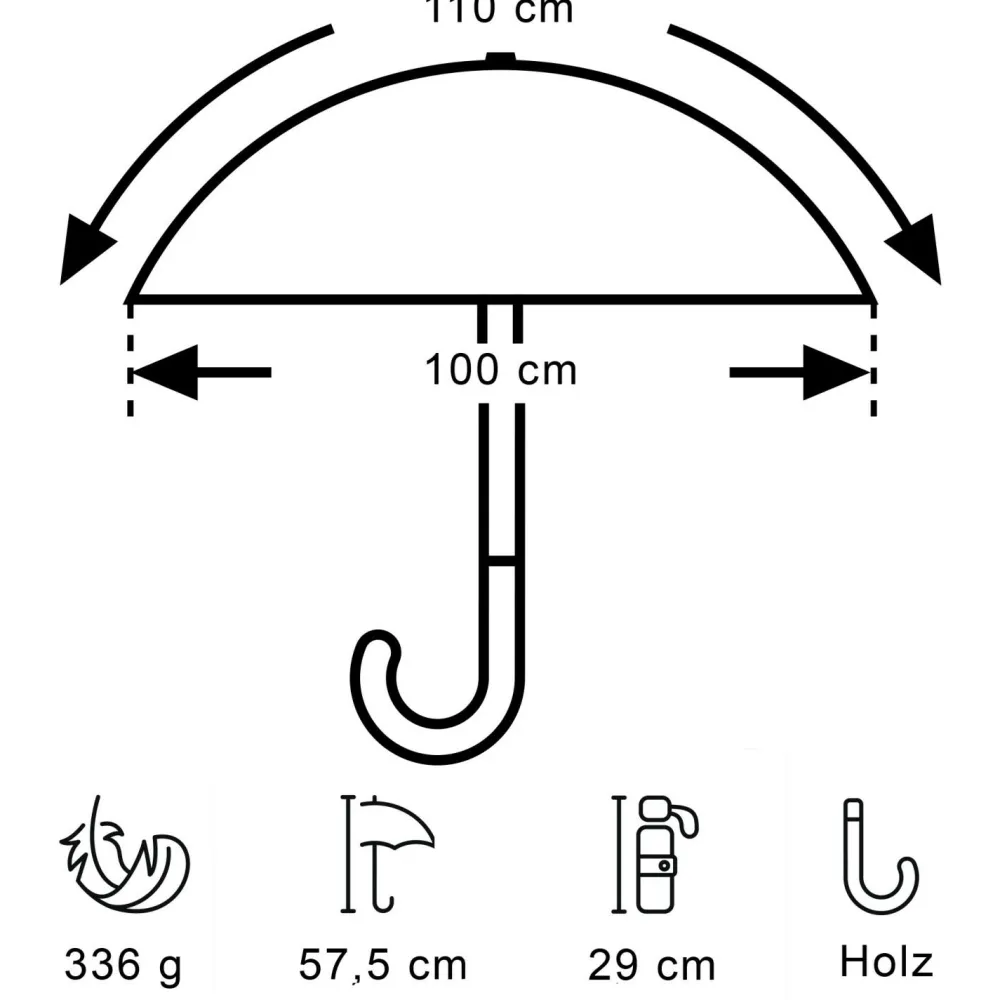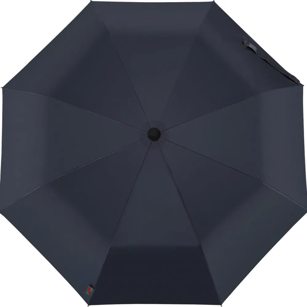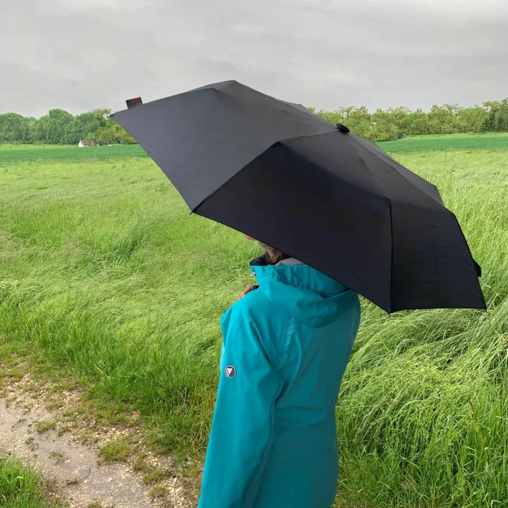 Der Light Trek ECO Automatik wiegt ohne Hülle gerade einmal 336 Gramm und ist trotzdem extrem stabil im Wind. Der Schirm öffnet und schließt automatisch per Knopfdruck. Sollte ein starker Wind den Bezug einmal umstülpen: Ein Kopfdruck genügt, und er schließt automatisch und unbeschadet. Außerdem hat er doppelte Nähte zwischen den Segmenten, eine robuste Nylonhülle mit Netzeinsatz, eine Fixierschlaufe und Karabiner, sowie einen im Griff mit integriertem Kompass.