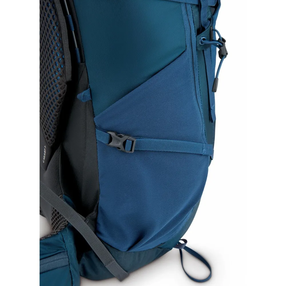 Dank des verstellbaren V-TRAX-Tragesystems passt sich der Rucksack individuell an Deinen Körper an, während das ergonomische Gurtsystem und der geformte Lendenbereich für optimalen Halt sorgen. Selbst bei voller Beladung bleibt der Tragekomfort durch den stabilisierenden Aluminiumrahmen erhalten. Die Hydroshield-Beschichtung schützt Deine Ausrüstung vor Feuchtigkeit und durch den seitlichen Zugriff hast Du schnell alles parat.