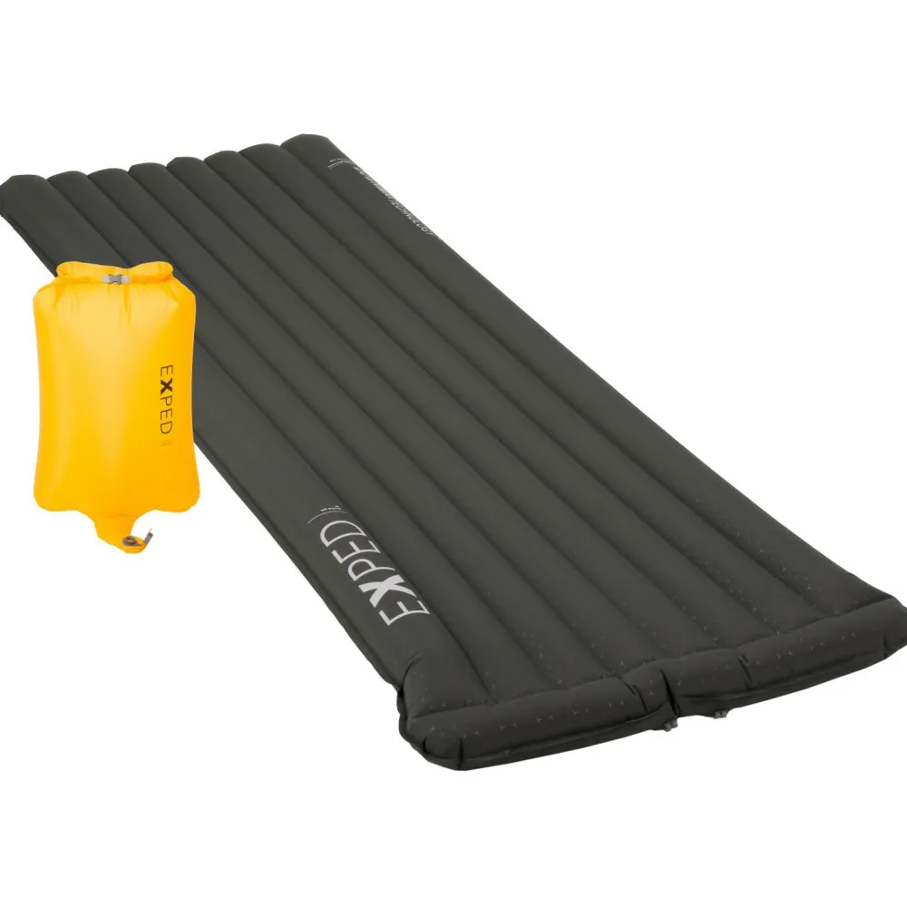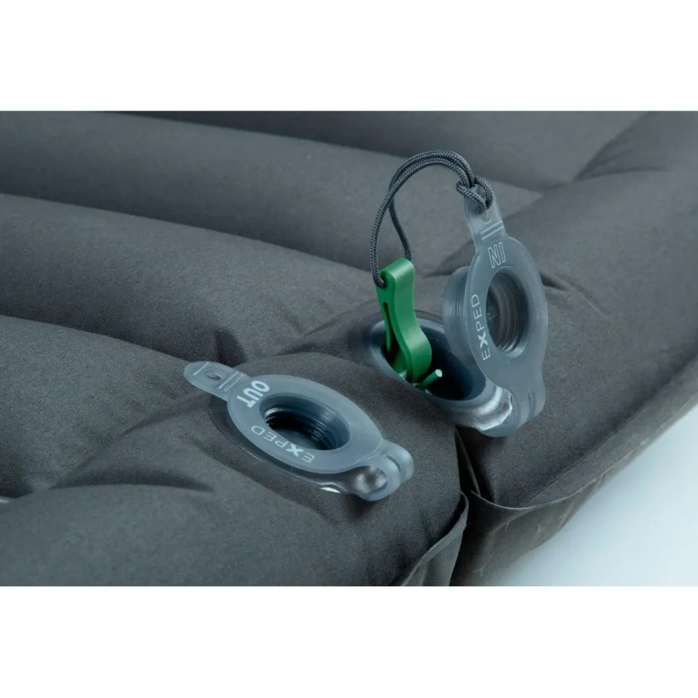 Die 7 cm dicke Dura 6R Isomatte lässt sich schnell mit Luft befüllen und auch zügig wieder entleeren. Dafür verfügt sie über ein Flatvalve Ventil und einen extra Schnozzel Pumpbag. Mit ihrem stabilen Material aus recycelten Rohstoffen und der hohen Isolationskraft eignet sich die Exped Matte perfekt für anspruchsvolle alpine Touren, Trekking und Expeditionen in polare Regionen.