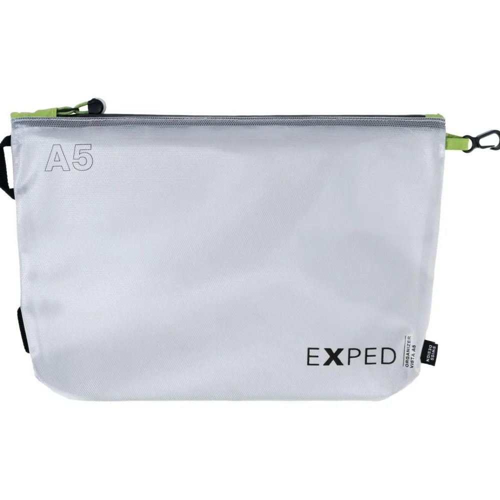 Die Organizer Vista von Exped ist eine federleichte und spritzwasserfeste Hülle für die optimale Organisation von Medikamenten, Toilettenartikeln, Karten, Dokumenten oder Geld. Ihr nahtbandverschweißtes TPU-Laminat schütz den Inhalt zusammen mit dem wasserabweisenden Reißverschluss vor Spritzwasser und Staub. Die Transparenz des Materials garantiert dabei eine gute Übersicht, da der Inhalt voll im Blick ist. Zugleich wird auch das umgebende Gepäck im Rucksack oder Koffer geschützt, da die verschweißte Konstruktion auch das Auslaufen von Flüssigkeiten aus dem Inneren verhindert. Damit ist die Organizer Vista Tasche eine angenehme und zuverlässige Begleiterin für jede Art von Reise!