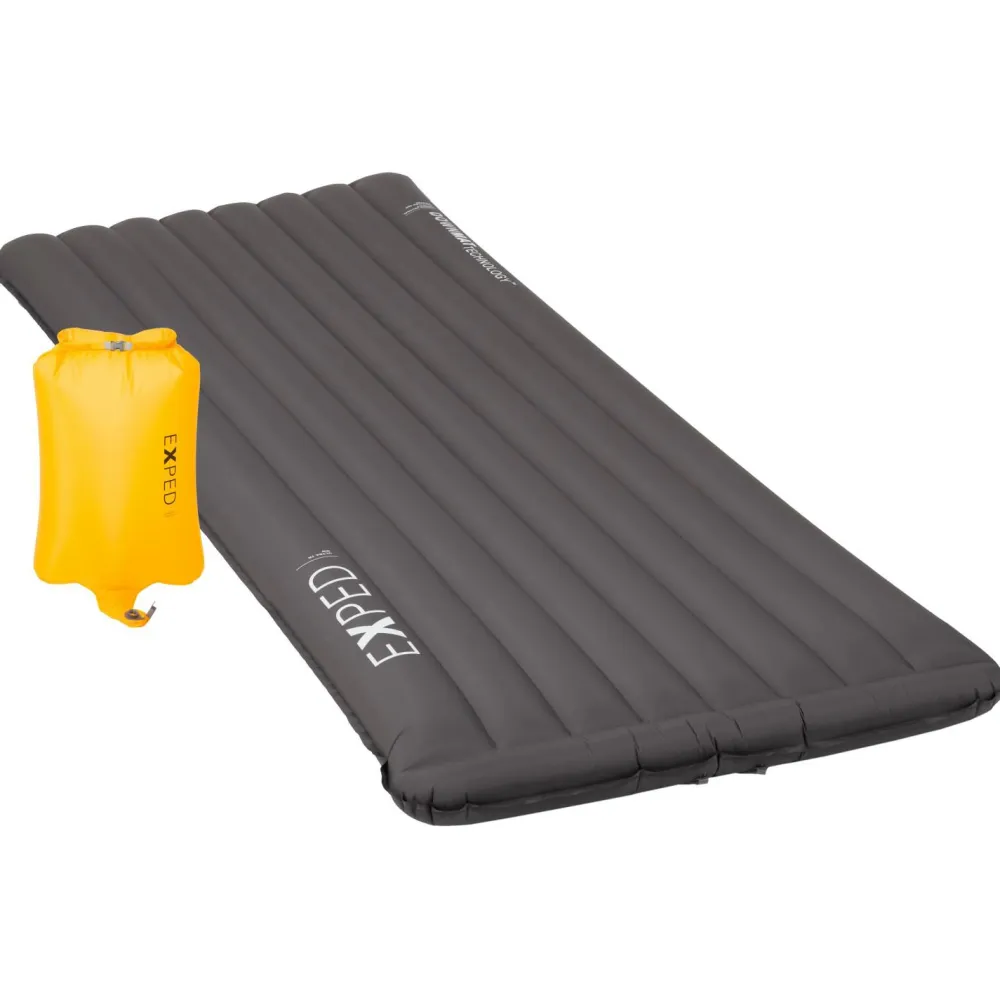 Die Ultra 7R Isomatte von Exped ist in verschiedenen Längen und Breiten erhältlich, so dass sie sich perfekt an den individuellen Bedarf anpassen lässt. Außerdem bietet Exped die Matte entweder in klassischer Rechteckform oder im Mumienschnitt an. Beide Formen verfügen über längsorientierte Luftkammern, die sich mit dem Schnozzel Pumpbag am Flatvalve Ventil schnell und einfach befüllen lassen.