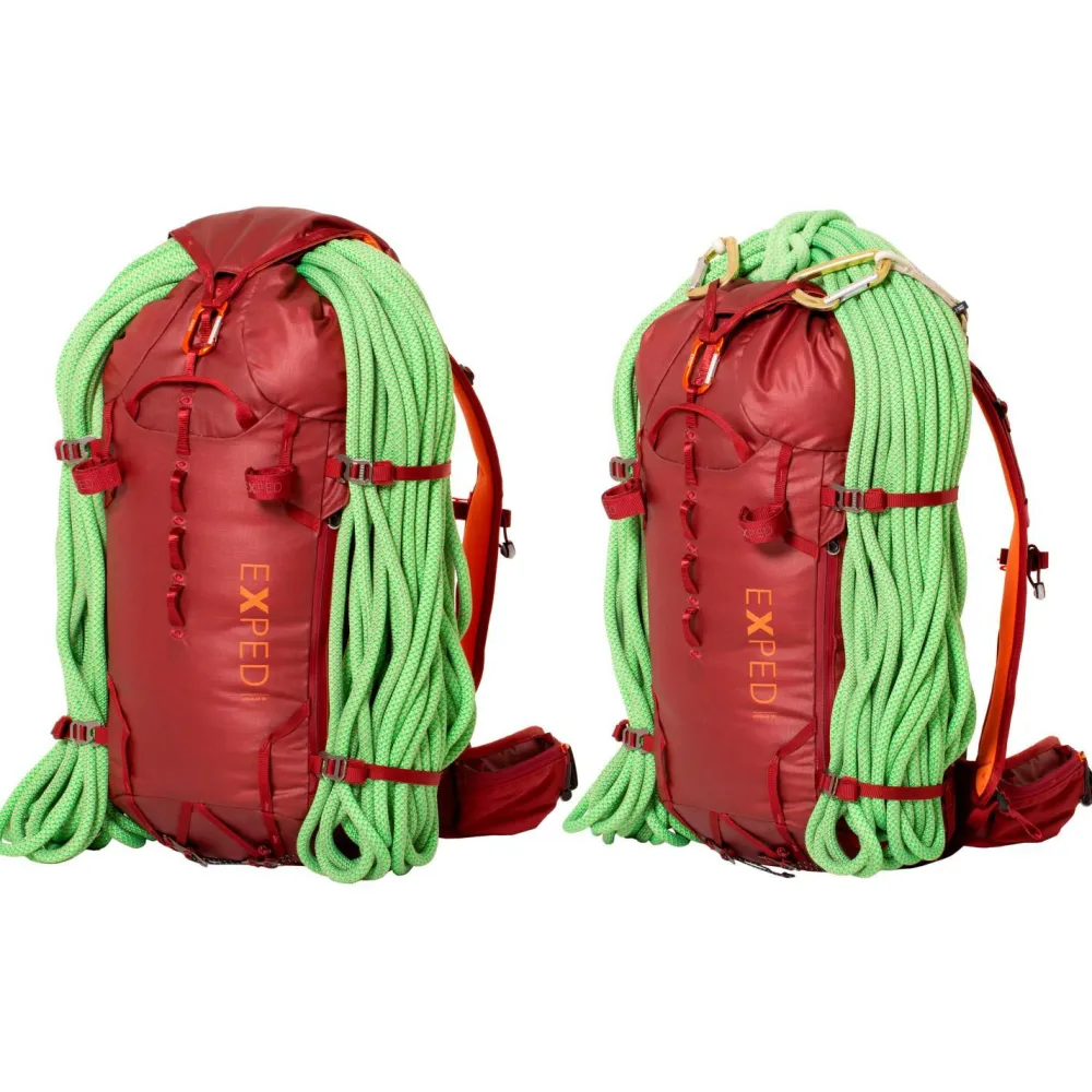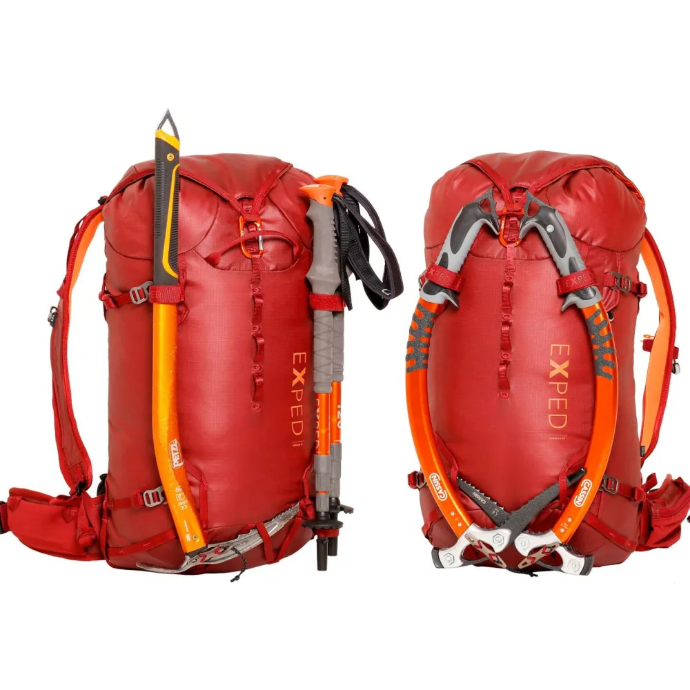 Dank einer PU-Beschichtung ist das Außenmaterial des Verglas 30 Wanderrucksack von Exped wasserabweisend und sorgt auf der nächsten Bergtour für einen zuverlässigen Schutz des Inhaltes.Durch den minimalistischen Deckelverschluss kann schnell auf das Innenfach zugegriffen werden. Eine Mesh-Innentasche ist über einen seitlichen Reißverschluss zugänglich. Sowohl das Daisy Chain System auf der Rückseite als auch Halterungen für Eispickel oder Wanderstöcke bieten viele Möglichkeiten, um Ausrüstung auf der Außenseite des Tourenrucksackes zu befestigen. Der gepolsterte Hüftgurt sorgt für hohen Tragekomfort und ist mit beidseitigen Taschen ausgestattet.Die vorgeformte Rückenplatte aus PE Schaumstoff kann bei Bedarf aus dem Exped Verglas 30 Wanderrucksack herausgenommen werden.
