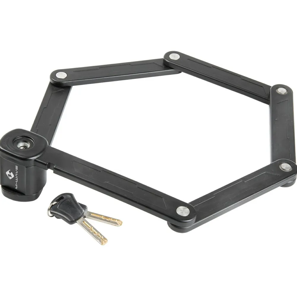 Mit dem Faltschloss F 875/6 Fahrradschloss von M-Wave gehst Du sicher, dass Dein fahrbarer Untersatz nicht von Ort und Stelle bewegt wird, wenn er damit angeschlossen wurde. Die extrem robusten Materialien lassen sich auch gewaltsam nicht öffnen. Für den Transport ist eine Halterung inklusive, die sich mit einem Klettverschluss werkzeuglos montieren lässt.