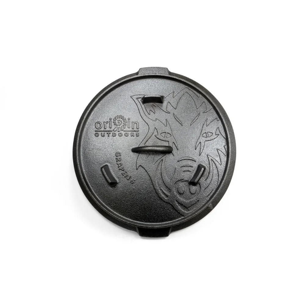 Vollständig aus Gusseisen gefertigt und sehr robust ist der Feuertopf Grapen von Origin Outdoors. Der vom ‚Grapen‘ abstammt und als Dutch Oven bekannt geworden ist, eignet sich hervorragend zum Kochen im Freien. Er kann direkt in offenes Feuer gestellt werden. Die exzellente Wärmeleitung und seine Wärmespeicherung über einen langen Zeitraum sowie die extreme Robustheit zeichnen diesen Topf aus.