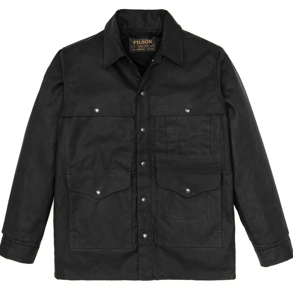 Die Lined Tin Cruiser von Filson ist eine erstklassige Outdoor- und Freizeitjacke für den vielseitigen Einsatz. Die Tin Cloth Serie hat sich ihren Namen und Ruf als hervorragend wetterbeständig und langlebig in den regennassen Wäldern des pazifischen Nordwestens erworben. Das ölbehandelte und damit wasserabweisende Tin Cloth Baumwoll-Canvas dieser Jacke zeichnet sich durch eine außergewöhnlich dichte Webart aus, die für Dornen und Stacheln praktisch undurchdringlich ist und gleichzeitig der ständigen Abnutzung standhält.