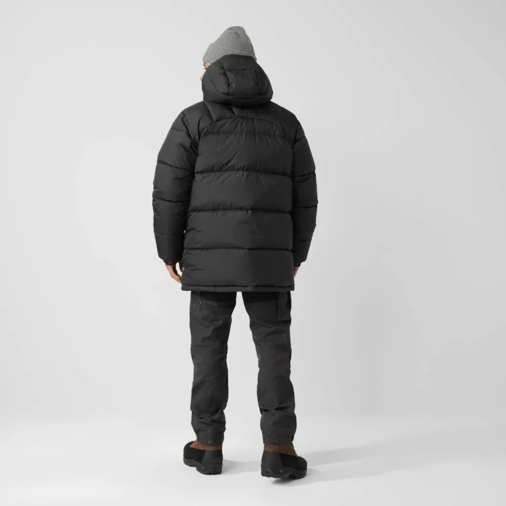 Mit dem Expedition Down Jacket Daunenmantel von Fjällräven hat die Kälte keine Chance mehr! Die dicke Daunenfüllung mit einer Bauschkraft von 700 cuin kann Dich auch an den kältesten Wintertagen noch wärmen. Dank seiner Länge wird auch Deine empfindliche Nieren- und Gesäßregion schön warm gehalten. Die große, ebenfalls gefütterte Kapuze und der hohe Stehkragen schütze Kopf und Hals vor Kälte. Bei Bedarf kannst Du sie mit einem Kordelzug enger stellen. Auch an der Taille und am Saum ist der Expedition Down Jacket Daunenmantel mit einem Kordelzug verstellbar, sodass dort keine Wärme entweichen kann.