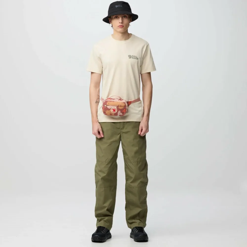 Fjällräven fertigt die Kånken Graphics Hip Pack Hüfttasche aus besonders robustem G-1000 HeavyDuty S Material. Die Materialkombination aus recyceltem Polyester und Organic Cotton ist im Alltag sehr widerstandsfähig. Mit verstellbarem Hüftgurt und Steckschnalle kann die zwei Liter große Tasche entweder an der Hüfte oder über die Schulter getragen werden. Neben dem großen Hauptfach verfügt die Tasche über eine Fronttasche und ein extra Fach an der Rückseite. Ein Tragegriff und reflektierende Details machen die hübsche Hüfttasche von Fjällräven komplett.